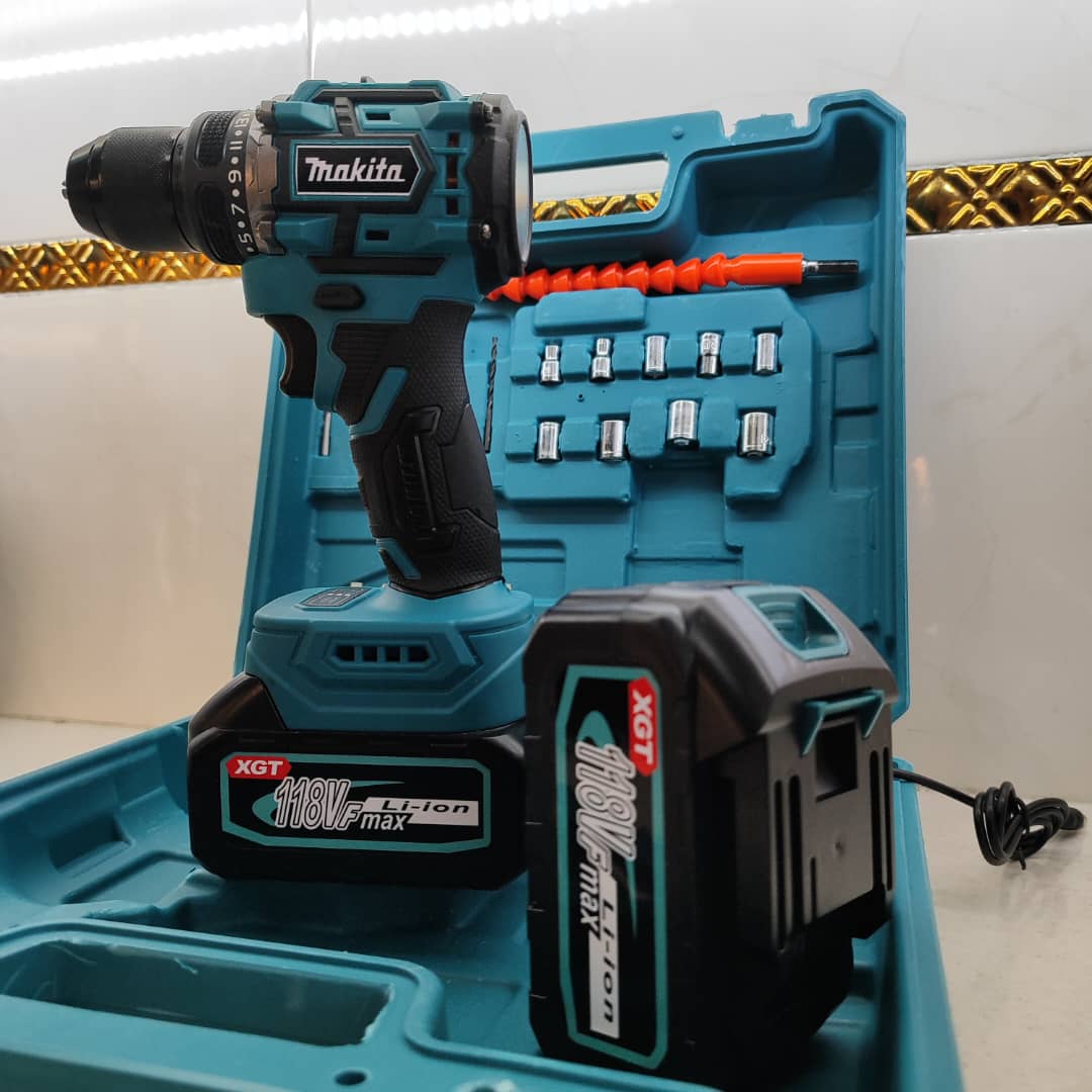 دریل شارژی 118 ولت ماکیتا موتور براشلس دوباتری سه نظام فلزی . پیچگوشتی شارژی 118 ولت ماکیتا با کیف و لوازم جانبی کامل کپیتماس بگیرید