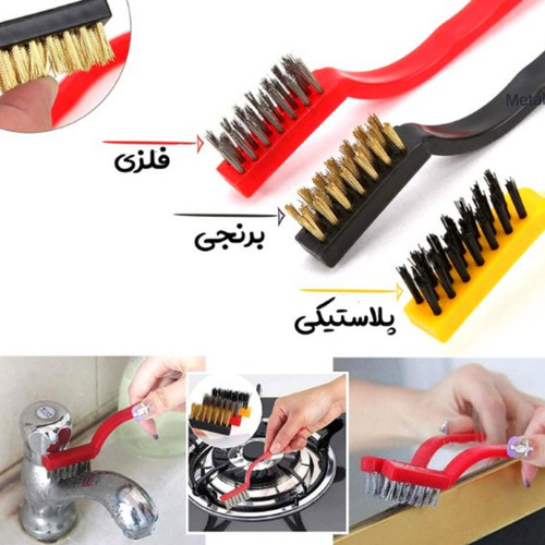 فرچه سیمی مسواکی ست 3 عددی از جنس پلاستیک ، برنج و فلز ضد زنگ