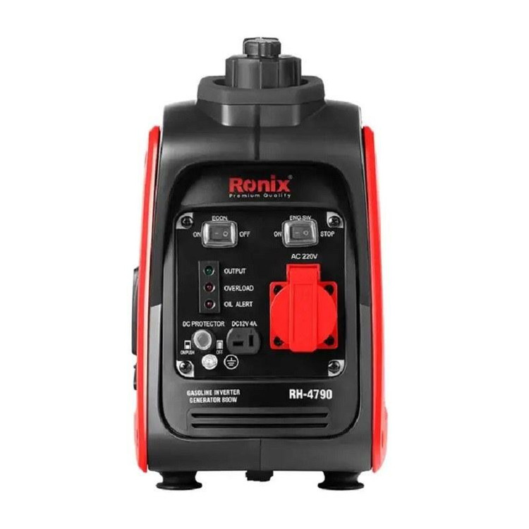 ویژگی ها -دارای موتور 4 زمانه با ظرفیت سیلندر40 سی سی و خروجی توان ماکزیمم0.8 کیلووات با عملکرد فوق العاده -کاهش 20 درصدی وزن نسبت به ژنراتورهای معمول که سبب اشغال فضای کمتر شده و حمل و نقل آن آسانتر میباشد. -تولید شکل موج سینوسی صاف و ولتاژ پایدار که از آسیب به وسیله های الکترونیکی حساس مانند موبایل ،لپ تاپ ،تلویزیون و ...جلوگیری میکند. -فوق العاده کم صدا با تولید صدای حداکثر 58 دسیبل -دارای یک خروجی 220 ولت AC و یک خروجی DC (12 ولت ) -مجهز به سوئیچ حالت اقتصادی که با تنظیم سرعت موتور بر حسب نوع بار متصل باعث کاهش مصرف سوخت و کاهش استهلاک ژنراتور میشود. -پایش دائمی اضافه بار و اتصال کوتاه مدار توسط واحد کنترل اینورتر و قطع سریع موتور در صورت بروز مشکل به منظور محافظت از اینورتر ژنراتور و وسیله های برقی متصل -دارای چراغ هشدار کمبود روغن برای جلوگیری از آسیب به موتور -مناسب برای تجهیزات الکترونیکی،کاروان ها،کمپینگ،وسیله های برقی خانگی و ابزارهای برقی کوچک صنعتی مشخصات کد محصول RH-4790 نوع ژنراتور اینورتر ولتاژ AC 220 ولت/50 هرتز حداکثر توان خروجی ژنراتور 800 وات نرخ توان خروجی 700 وات ضریب قدرت 1 خروجی DC 12 ولت/4 آمپر نوع موتور موتور چهار زمانه بنزینی /هوا خنک/OHV قطر*ارتفاع(میلیمتر) 39*33.5 حجم موتور 40 سی سی حداکثر توان خروجی موتور 0.9کیلو وات/5500 دور بر دقیقه سوخت بنزین بدون سرب ظرفیت مخزن سوخت 2.1 لیتر مدت زمان کارکرد 4.1 ساعت نوع روغن SAE 10W30 ظرفیت مخزن روغن 0.25 لیتر نوع استارت دستی(هندلی) سیستم جرقهزنی C.D.I. نوع شمع CMR6A (TORCH) ابعاد محصول 395*209*355 ابعاد بسته بندی 425*230*380 وزن خالص 9 کیلوگرم وزن ناخالص 10.2 کیلو گرم نوع بسته بندی جعبه دو رنگ رونیکس متعلقات کابل اتصال DC،پیچگوشتی،آچار شمع