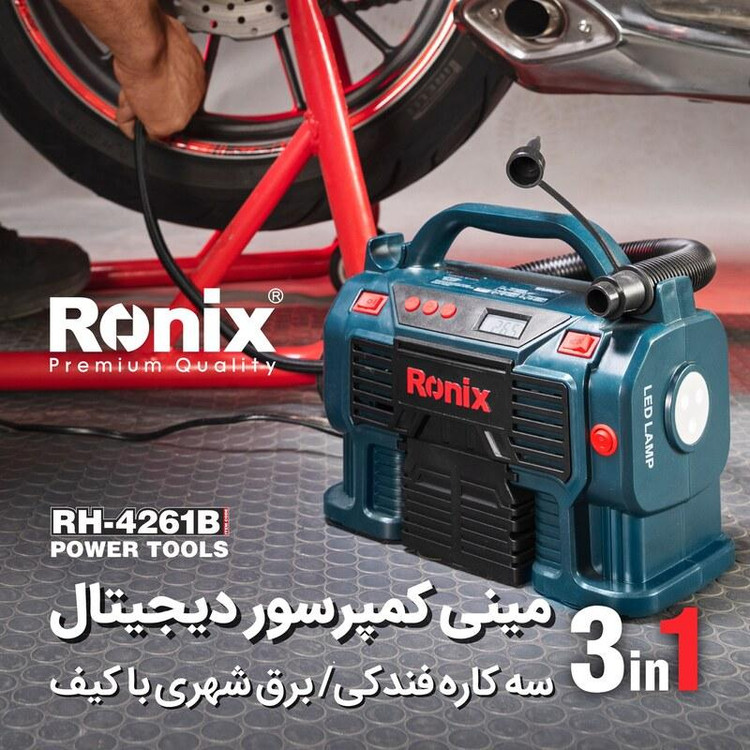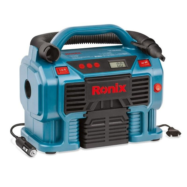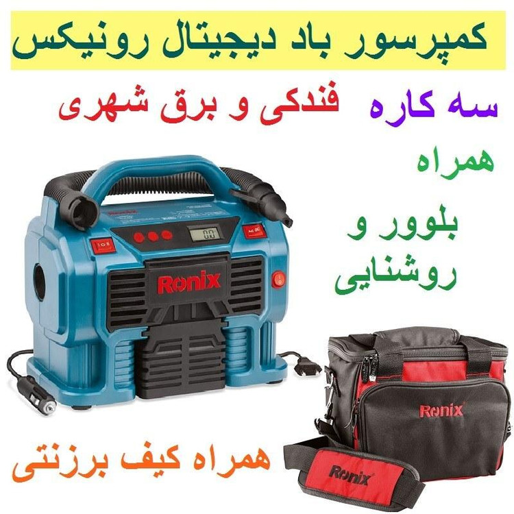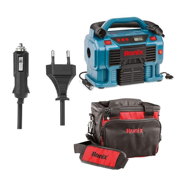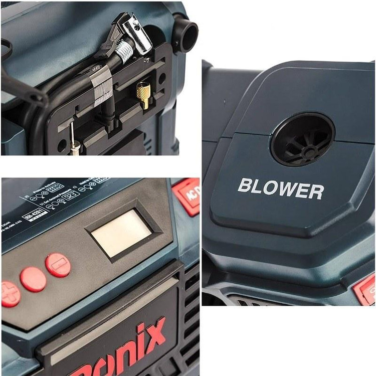 ویژگی ها -مجهز به موتور و سیلندر مستحکم جهت تولید هوا با قدرت PSI 160 -یک دستگاه چند منظوره مناسب باد کردن لاستیک دوچرخه ، ماشین و ... -قابلیت استفاده با برق شهر یا جای فندکی خودرو -دارای سریهای کاربردی جهت استفاده در فضاهای گوناگون -دارای مکانیزم تنظیم شونده قطع کننده در فشار مطلوب جهت سهولت کاربری -دارای صفحه نمایش دیجیتال جهت نمایش میزان فشار تولیدی -قابلیت اتصال مستقیم به فندکی خودرو -دارای قابلیت دمندگی برای استفاده به عنوان بلوور به کمک شلنگ خرطومی تعبیه شده بر روی دستگاه -بدنه با کیفیت و ساختار ارگونومیک جهت افزایش زیبایی و کیفیت عملکرد -دارای چراغ LED پر نور جهت مصارف روشنایی به عنوان چراغ قوه -طراحی منحصر به فرد محل قرار گیری سری ها و شلنگ باد -دارای پایه های پهن جهت افزایش پایداری دستگاه -عرضه در کیف برزنتی طراحی شده توسط رونیکس برای حملونقل آسان و ایمن مشخصات نوع بسته بندی کیف برزنتی کد محصول RH-4261B منبع تغذیه برق مستقیم 12 ولت (فندک خودرو)/ برق شهری 220-240 ولت/50-60 هرتز حداکثر فشار 11 بار- 1100 کیلوپاسکال- 160 PSI حجم باد خروجی بلوور 360 لیتر بر دقیقه طول نازل باد 81 سانتیمتر طول خرطومی بلوور 36 سانتیمتر طول سیم فندکی 3 متر وزن 2 کیلوگرم متعلقات 1 عدد نازل باد توپ- 1 عدد مبدل باد تایر- 1 عدد مبدل باد تشک بادی-شلنگ خرطومی