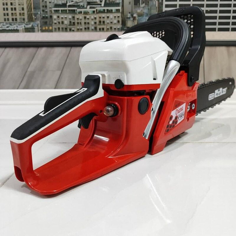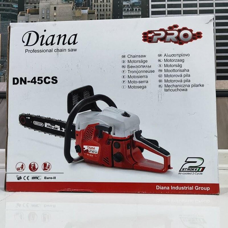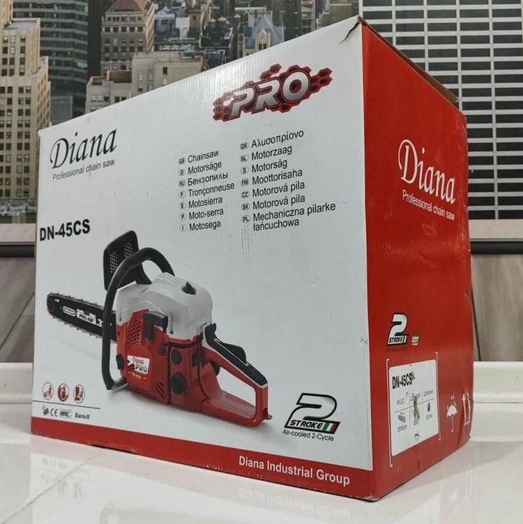 از اره های موتوری جهت برش و هرس انواع چوب و درخت استفاده می شود. – اره های موتوری دیانا مجهز به موتور دو زمانه تک سیلندر، استارت دستی آسان و کاربراتور حرفه ای ژاپنی WALBRO می باشند. – این اره های موتوری جهت کاهش خطر در حین عملیات برش، به مکانیزم منحصربفرد ترمز اضطراری مجهز هستند. – سیستم روغن کاری اتوماتیک اره های موتوری دیانا، از اصطکاک میان زنجیر و ساطور جلوگیری کرده و عملکردی آسانتر و روانتر را سبب می شوند. – اره های زنجیری دیانا دارای سیستم ضد لرزش و سیستم تنظیم کشش زنجیر هستند. – زنجیر و ساطور اره های موتوری دیانا بسیار باکیفیت و مقاوم می باشند. – اره های دیانا دارای گواهی نامه های بین المللی GS,CE,ESO هستند. – تیغه اره دیانا در سایز 45 سانتی متر است. – طراحی جدید در سیستم کلاچ منجر به عملکرد بهتر و کارایی بالاتر این اره ها میشود.