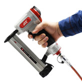نوع میخ : 18GA بازهی طول میخ : 15 تا 30 میلی متر گنجایش مخزن: 100 عدد میخ موارد استفاده در صنعت مبلمان، رویهکوبی، دکوراسیون، ساخت درب و پنجره و ... دارای شلنگ 7.5 متری مجهز به خشاب کشویی آلومینیومی ظرفیت مخزن : 100 عدد میخ محدوه ی فشار هوا : 58 تا 100 psi دارای کاور اگزوز قابل تنظیم نوع سوزن میخکوب: اسکا سه سانتی متری (F ) مجهز به دسته ی ارگونومیک با روکش لاستیکی پرقدرت و بادوام دارای وزن کم 1100 گرم 15 ماه گارانتی شرکت رونیکس تولید کره جنوبی