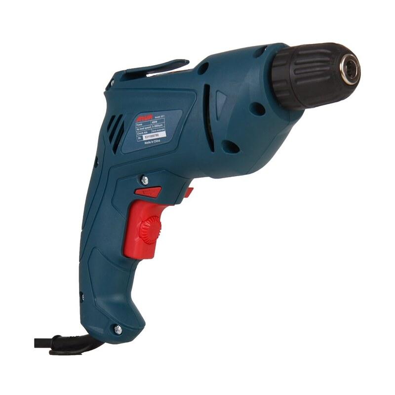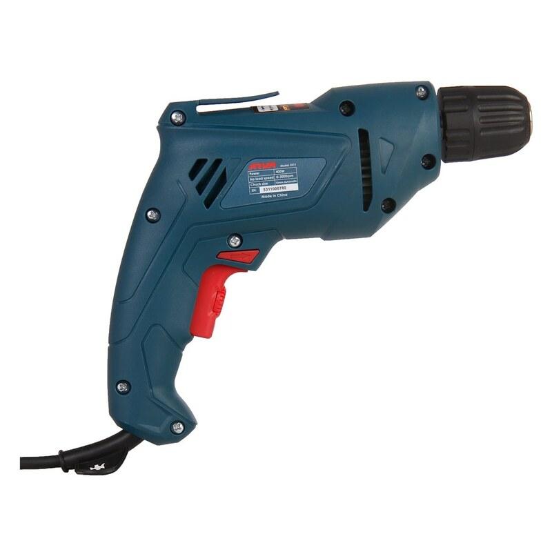 منبع تغذیه: برق توان (قدرت ورودی): 400 وات ولتاژ ورودی: 220 ولت فرکانس: 50/60Hz قابلیت کنترل سرعت: دارد سرعت گردش در حالت بی باری: 0 تا 3000 دور در دقیقه سیستم تغییر جهت چرخش: دارد (کلید چپ گرد و راست گرد) قفل سوئیچ: دارد سه نظام: اتومات 10 میلیمتری قابلیت سوراخکاری در حالت چکشی: ندارد ظرفیت سوراخکاری در چوب: 25 میلیمتر ظرفیت سوراخکاری در فلز: 10 میلیمتر کیف BMC: ندارد مدت گارانتی: 12 ماه دارای کلید و بلبرینگ ضد غبار موتور قدرتمند و کارآمد سیم پیچی آرمیچر و بالشتک %100 مس جنس سیم استاندارد (VDE) مجهز به کلید دیمردار دارای بدنه ضد تعریق دسته نرم جهت سهولت کاربرد مشخصات موتور دریل آروا 5311 دریل برقی مدل 5311 دارای سیم پیچی آرمیچر و بالشتک 100% مس است که در توان این دستگاه موثر بوده و رسانایی خوبی به وجود می آورد. سیم پیچی تمام مسی در دریل های آروا قدرت تحمل حرارتی بالا را دارد. سیم پیچی صد در صد مس تنها برای تحمل توان بالا نیست و از آن برای ایجاد رسانایی بالا و به وجود آمدن میدان مغناطیسی قوی استفاده می شود. بلبیرینگ صنعتی و کلید ضد غبار دستگاه کار سوراخکاری همیشه گرد و غبار و ذرات ریز تولید می کند و برخی قطعات دریل مانند بلبرینگ ها و کلید ها از حساسیت بالای برخوردار هستند که باید به بهترین شکل از آنها مراقبت کرد. دریل 5311 با مجهز بودن به سیستم ضد غبار بلبرینگ ها و کلید پاور، از دستگاه در برابر ذرات ریز معلق محافظت می کند و اجازه نمی دهد که بلبرینگ و کلید پاور با ورود این ذرات آسیب ببینند و خراب شوند.