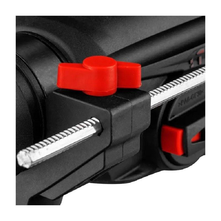 ویژگیهای دریل سیستم گردش چپگرد سیستم گردش راستگرد ولتاژ 180-240 ولت نرخ ضربه 4000 ضربه در دقیقه منبع تغذیه برق مشخصات سه نظام چهار شیار (SDS Plus) سرعت حرکت آزاد 1100 حداکثر قطر سوراخکاری در مصالح 26 حداکثر قطر سوراخکاری در فلز 13 حداکثر قطر سوراخکاری در چوب 30 توان 800 وات اقلام همراه کالا دسته کیف مته دفترچهی راهنما خط کش قلم سایر توضیحات توان ضربه دستگاه 3 ژول دارای قابلیت کنترل سرعت با کلید فشاری با کیفیت ضد غبار تحت استانداردهای TUV و CE سبک و کم حجم جهت حداکثر تسلط حین کار مجهز به سیستم ابزار گیر چهار شیار (SDS Plus) دارای سه قابلیت عملکرد سوراخ کاری، سوراخ کاری چکشی و تخریب مجهز به بلبرینگ های ضد غبار NSK ژاپن دارای دسته کمکی با روکش نرم و با قابلیت چرخش 360 درجه مجهز به کابل 3 متری نرم و با کیفیت تحت استاندارد VDE آلمان دارای مته های الماسه در سایزهای 6 و 8 و 10 و قلم نوک تیز و تخت طراحی کاملا ارگونومیک و شکیل با کیفیت بالا و ساخته شده از متریال درجه 1 استفاده از روکش لاستیکی بر روی دسته ها جهت راحتی کاربر کلید چپگرد راستگرد با طراحی منحصر به فرد و مقاوم دارای محل تعبیه شده جهت آویز دستگاه مجهز به سیستم کروی اتصال کابل به دستگاه جهت جلوگیری از قطعی کابل در کار مداوم دارای نویز کم 102 دسیبل دستگاه