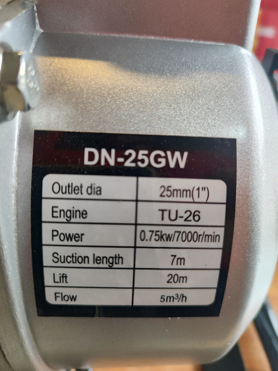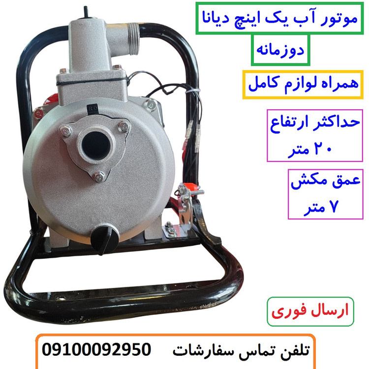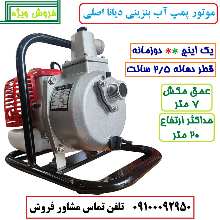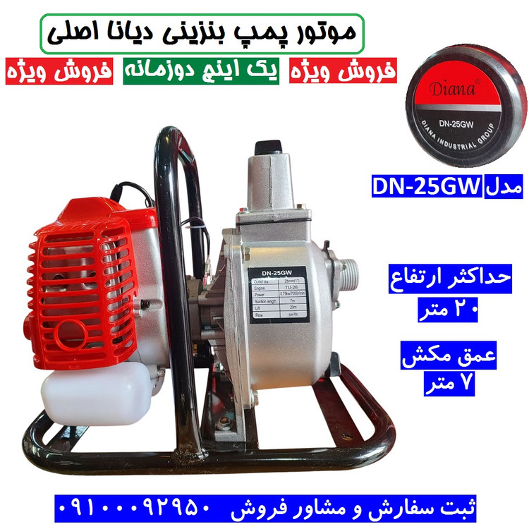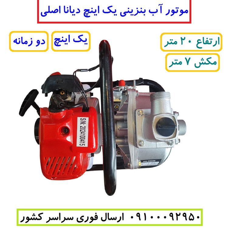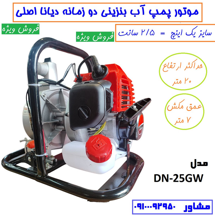 موتور آب 1 اینچ بنزینی دوزمانه دیانا اصلی مدل DN-25GW موتور پمپ یک اینچ دیانا با لوازم مطابق تصویر (بسیار سبک)