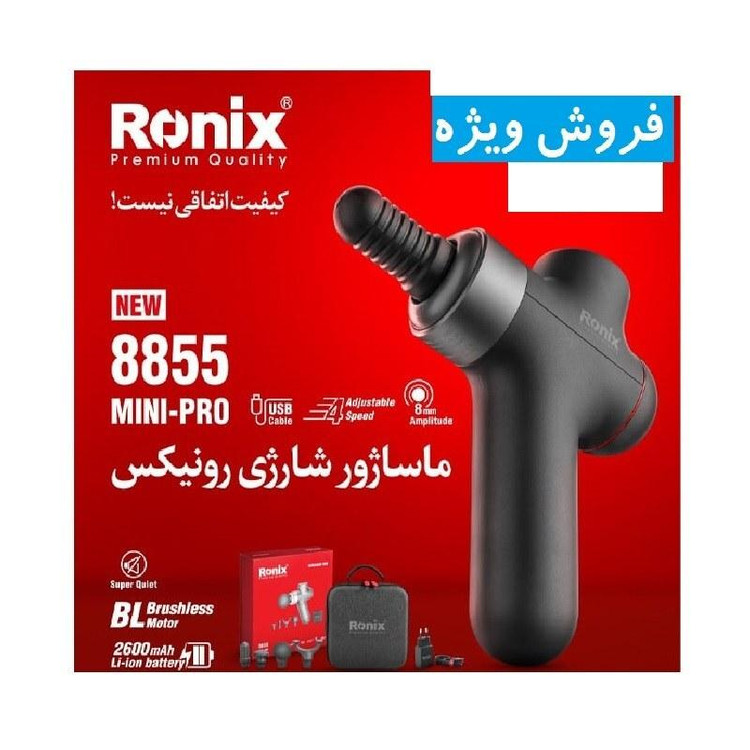 ماساژور شارژی رونیکس براشلس سری Mini-Pro مدل 8855 ماشاژور مدل مینی پرو همراه گارانتی شرکت رونیکس ماساژور حرفه ای