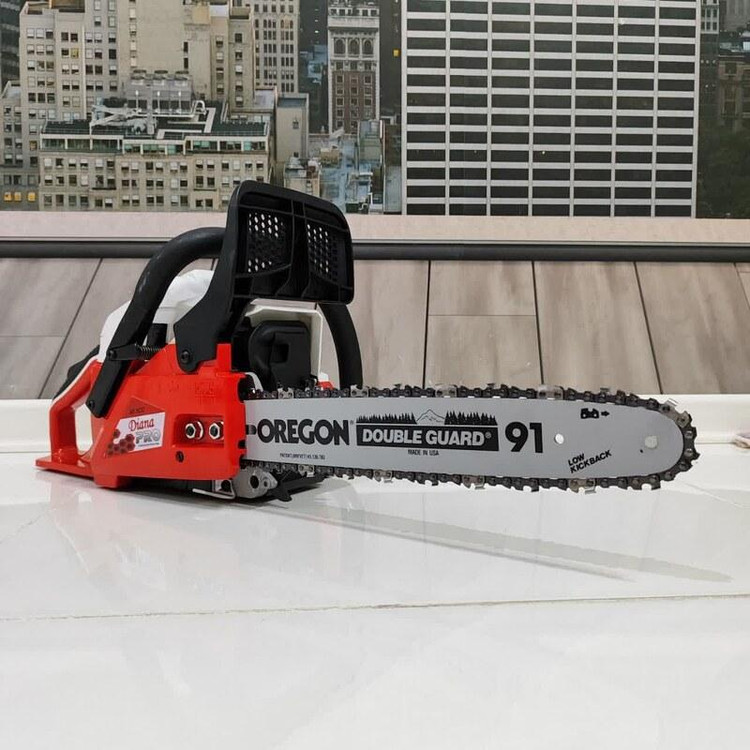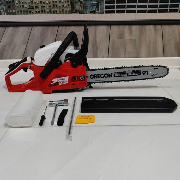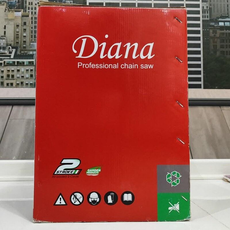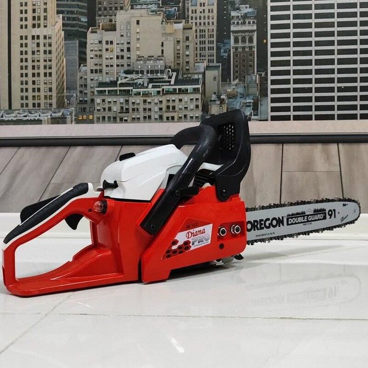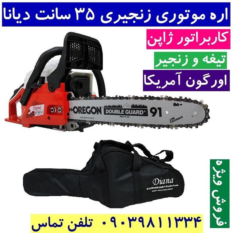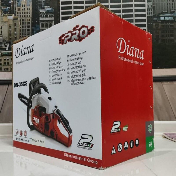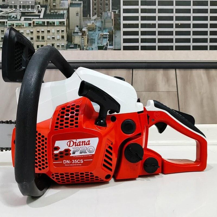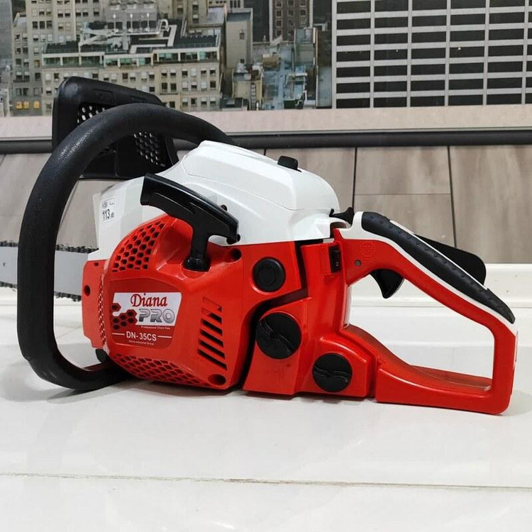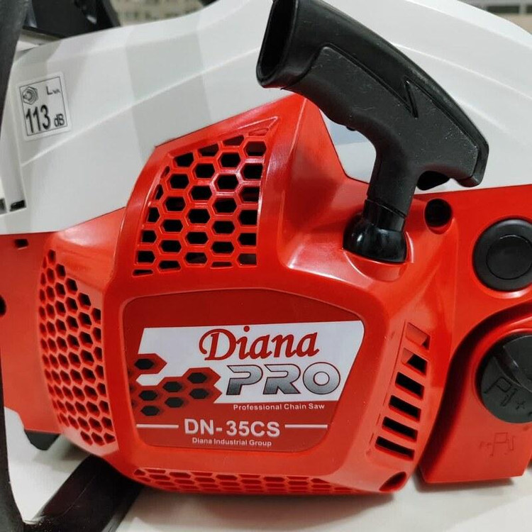 مشخصات فنی اره زنجیری دیانا مدل DN-35CS دارای تیغه ای به طول 35 سانت و و موتور قدرتمند با 1.8 اسب بخار قدرت می باشد که به راحتی نیاز هر کاربری را برطرف خواهد کرد. اره زنجیری دیانا وزنی معادل 5.3 کیلوگرم دارد که جزء دستگاه های سبک محسوب می شود و علاوه بر راحتی کاربر سرعت و دقت عمل را نیز بالا می برد. از جمله ویژگی های اره زنجیری دیانا می توان به موتور دو زمانه تک سیلندر، استارت دستی ، کاربراتور حرفه ای ژاپنی WALBRO ، استارت آسان و موتور بهینه و آخرین تکنولوژی محیطی گواهی نامه های بین المللی GS,CE,ESO و … ترمز زنجیر ، سرعت زنجیر 11000 دور در دقیقه ، زنجیر حرفه ای OREGON کانادا ، سیستم روغنکاری زنجیر اتوماتیک ، گام حرکتی 0.325P/8.25MM و دسته با طراحی ارگونومیک جهت سهولت در کارکرد دستگاه نام برد. کیف برزنتی تیغه – آچار – دفترچه از جمله اقلام همراه دستگاه می باشد . این محصول دارای 73x24x28 سانتیمتر است .