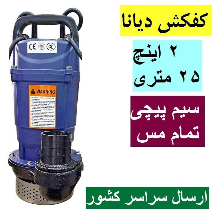 قدرت :KW 1/5 دبی:19 m3/h ارتفاع آبدهی :35 m ولتاژ :220 V سرعت گردش :2860 دور بر دقیقه جریان:11/4 A برق مصرفی : 50Hz پمپهای کفکش از نوع پمپهای سانتریفیوژ (گریز از مرکز) مستغرق هستند و اساس کار آنها بدینصورت است که یک موتور الکتریکی، پمپ را به حرکت درآورده و در نتیجه انرژی جنبشی سیال افزایش یافته و سیال پمپاژ میشود. فشار سیال خروجی به میزان چرخش پروانهها بستگی دارد. حداکثر آبدهی کفش کش 2 اینچ دیانا با ارتفاع 25 متر 25 متر مکعب در ساعت می باشد. – از کف کش های دیانا در چاه، مزارع، باغات، استخرها، آب نما، فواره، انتقال آب باران، مصارف کشاورزی و صنعتی استفاده می شوند. – قدرت الکتروموتور کفکش 2 اینچ با ارتفاع 25 متر دیانا، 1.5 اسب بخار می باشد. – این کف کش ها هم به همراه فلوتر و هم بدون فلوتر ارائه می شوند. – در این پمپ های کفکش از سیستم خنک کننده استفاده شده است. – کفکش های دیانا پمپ به همراه 10 سال خدمات پس از فروش توسط شرکت ارائه می شوند.