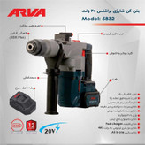 بتن کن شارژی آروا براشلس 3.8 کیلویی 20 ولت دو باتری مدل 5832 اروا همراه کیف و کارت گارانتی شرکت آروا