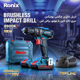 کیت دریل پیچگوشتی چکشی شارژی 13 میلیمتری براشلس 20 ولت دو باتری رونیکس مدل 8900k با گارانتی رونیکس 8900K