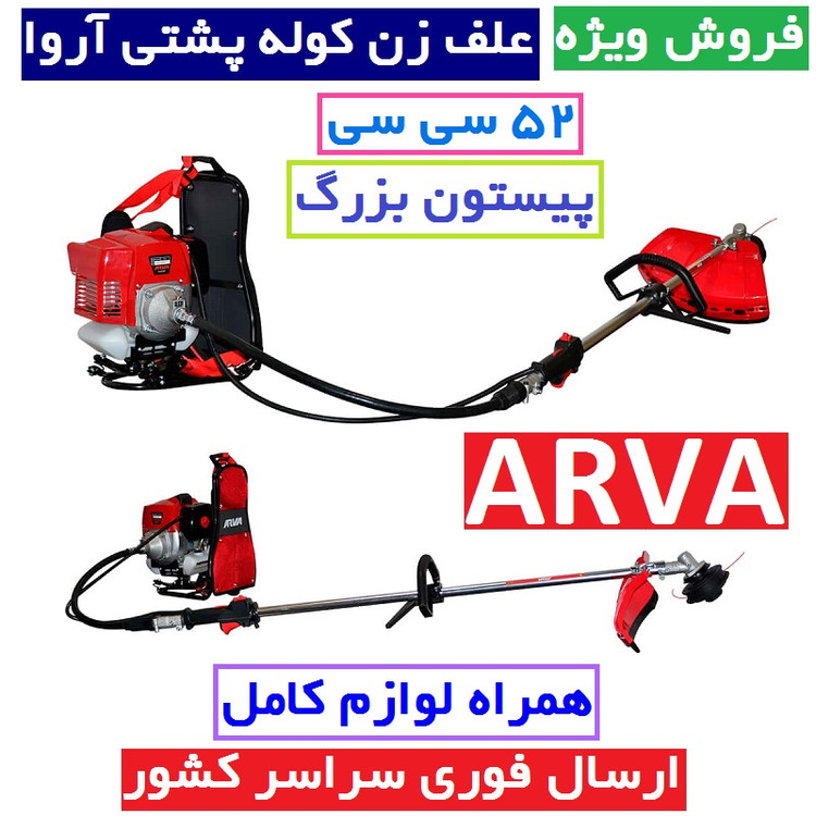 علف زن کوله پشتی آروا 52 سی سی مدل 6223 حاشیه زن بنزینی (کوله ای) 52 سی سی 2200 وات مدل 6223