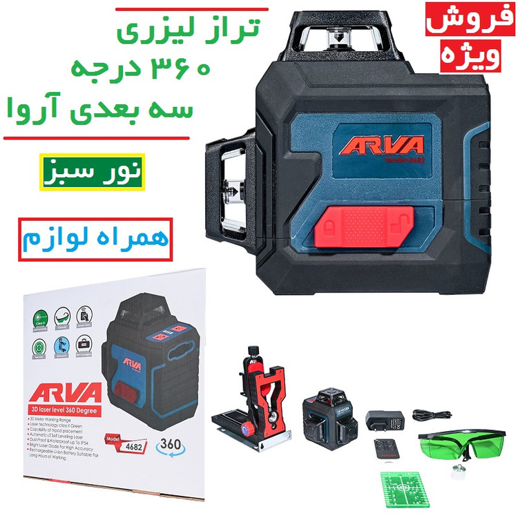 تراز لیزری 360 درجه سه بعدی 3D آروا (نور سبز) مدل 4682 تراز لیزری سه بعدی اروا مدل 4682 با لوازم کامل