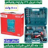 ست ترکیبی دریل برقی 29 پارچه رونیکس مدل RS-0007 کیت دریل 600 وات رونیکس 29 پارچه با کارت گارانتی شرکت رونیکس