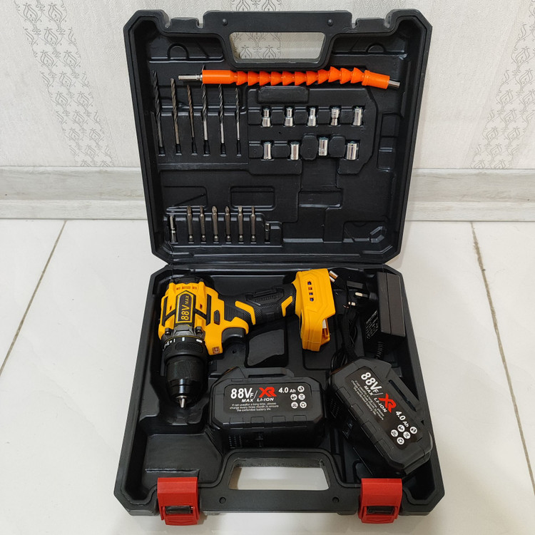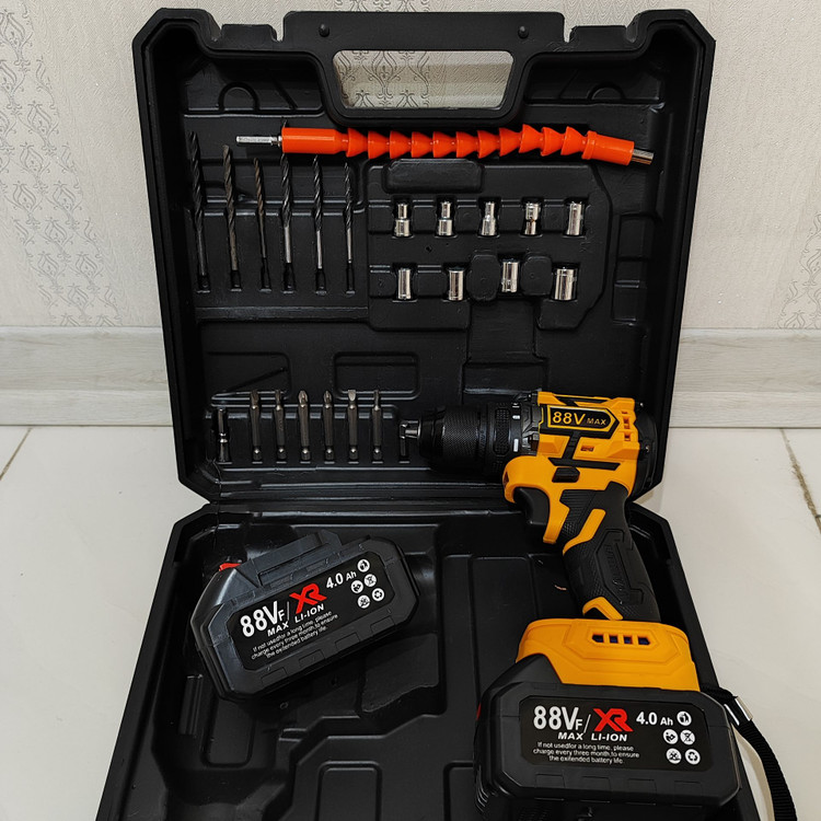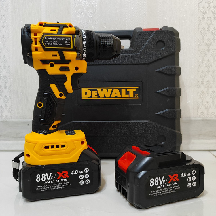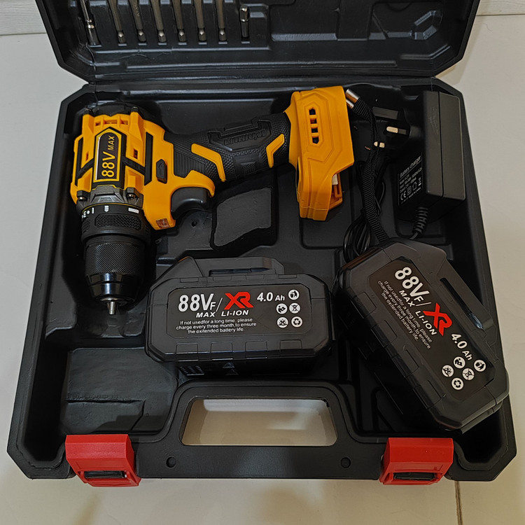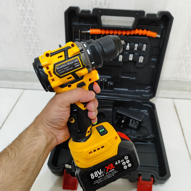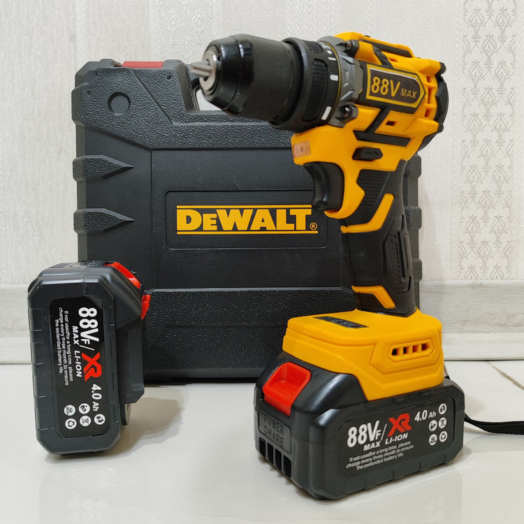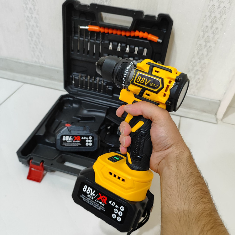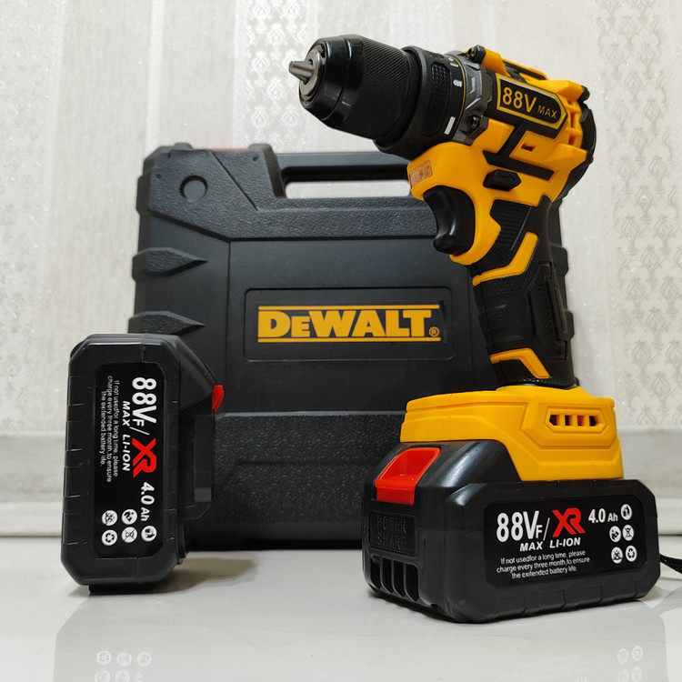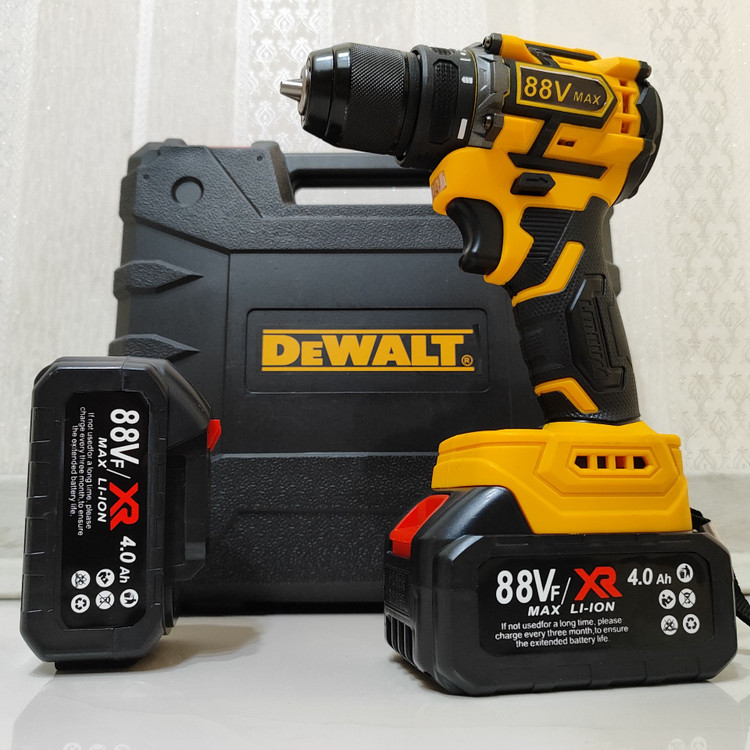 دریل شارژی چکشی 88 ولت دیوالت دوباتری سه نظام فلزی پیچگوشتی شارژی 88 ولت دیوالت با کیف و لوازم جانبی کامل