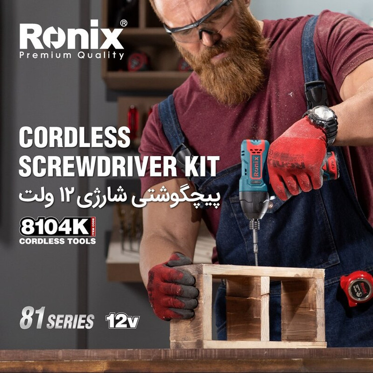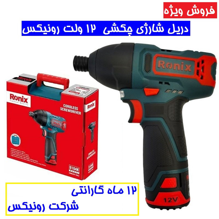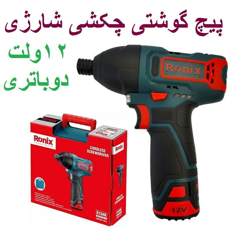 کیت پیچ گوشتی چکشی شارژی 12 ولت رونیکس مدل 8104k همراه کارت گارانتی شرکت رونیکس
