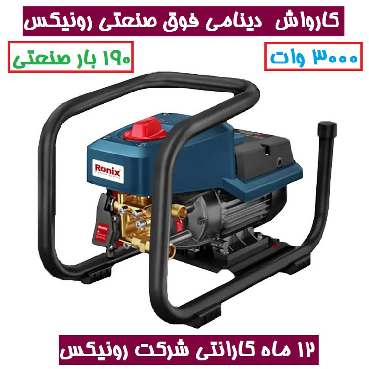 کارواش دینامی صنعتی رونیکس 190 بار 3000 وات مدل rp-0190 کارواش دینامی رونیکس همراه کارت گارانتی شرکت رونیکس