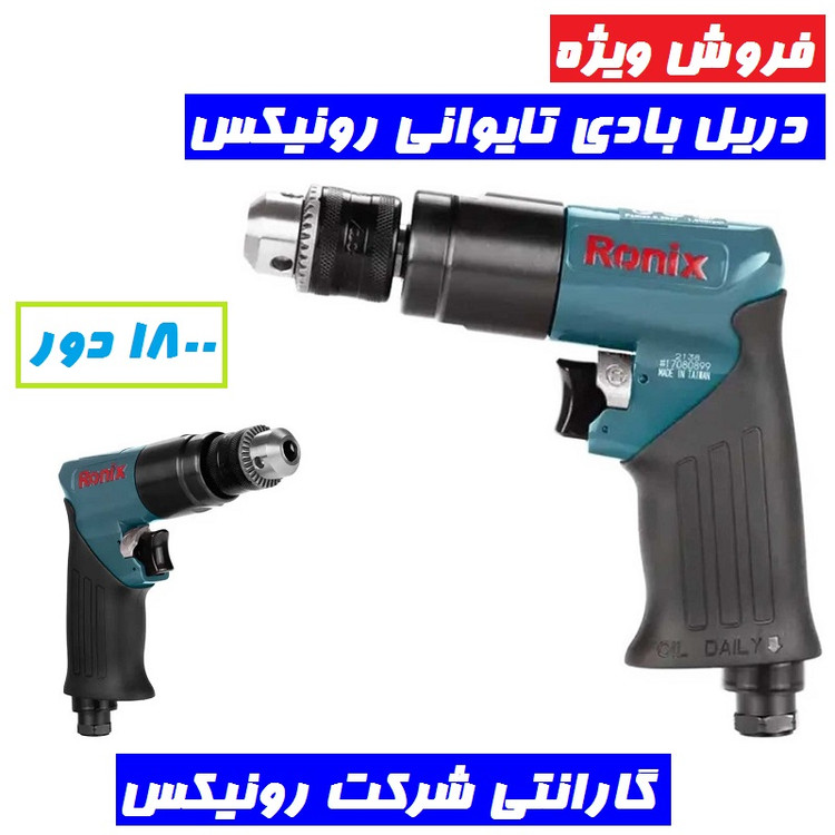 دریل بادی تایوانی 10 میلیمتری آچاری 1800 دور رونیکس مدل 2138 با کارت گارانتی شرکت رونیکس