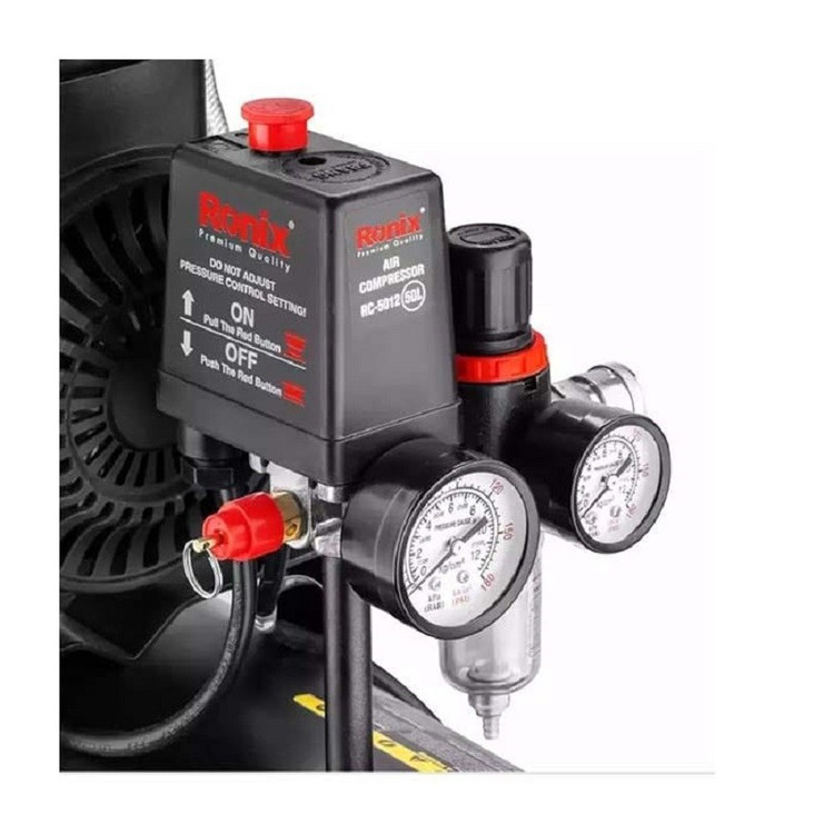 ویژگی ها -مخزن 50 لیتری با موتور 1680 واتی که برای رنج وسیعی از کاربری ها توان تولید می کند -ذخیره هوای کافی با فشار حداکثر 8 باری برای عملیات های مداوم -طراحی جمع و جور و سبک مجهز به دسته برای جابجایی و استفاده آسان -مجهز به موتور القایی با توان بالا جهت کار به طور مداوم -مجهز به کلید FBANG جهت کارایی اثربخش و عمر طولانی -مجهز به دو سیلندر به منظور پر شدن مخزن هوا در حداقل زمان -مجهز به سوپاپ اطمینان -بدون نیاز به روغنکاری با طول عمر بالا - فوق العاده کم صدا با طراحی بروز در قسمت پمپ -دارای شیر تخلیه در زیر مخزن -مجهز به شیر برقی به منظور افزایش کارایی در عملکرد -بدون لرزش در حین کار -مجهز به 2 گیج فشار فلزی -مجهز به سوییچ محافظ حرارتی -دارای رگولاتور مجهز به فیلتر آب و روغن به منظور تحویل هوای خشک خروجی -مجهز به پایه های لاستیکی با دوام قابل استفاده در محیط های شیب دار و ناهموار -دارای 1 رگولاتور و 1 عدد کوپلر برای دستیابی به حداکثر کارایی دستگاه های بادی متصل مشخصات کد محصول RC-5012 ظرفیت مخزن 50 لیتر ولتاژ 220-240ولت فرکانس50-60هرتز 50-60هرتز توان600وات 1680 وات سرعت 2800 دور بر دقیقه هوای خروجی 140 لیتر بر دقیقه حداکثر فشار کاری 0.8MPa (مگاپاسکال) فشار عملکردی شیر اطمینان 0.88MPa (مگاپاسکال) فشار شروع به کار مجدد 0.5MPa (مگاپاسکال) فشار کاری 0 الی 0.8MPa (مگاپاسکال) وزن 32 کیلوگرم نوع بسته بندی بسته بندی طراحی شده توسط رونیکس متعلقات 2عدد فیلتر هوا،2عدد چرخ،2عددپایه لاستیکی، 1عدد دسته