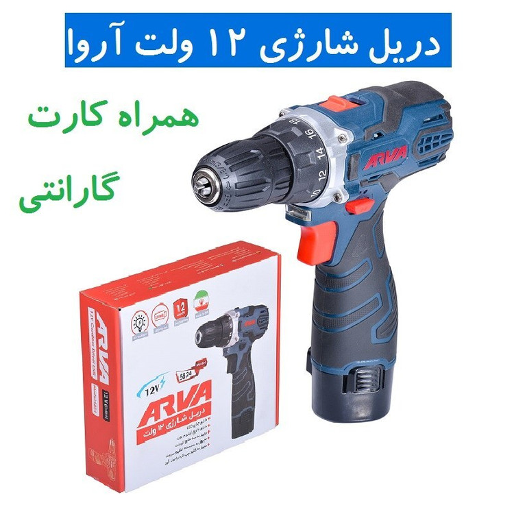 دریل شارژی 12 ولت آروا مدل 5824 پیچگوشتی شارژی 12 ولت آروا با کارت گارانتی شرکت آروا مدل 5824 اروا