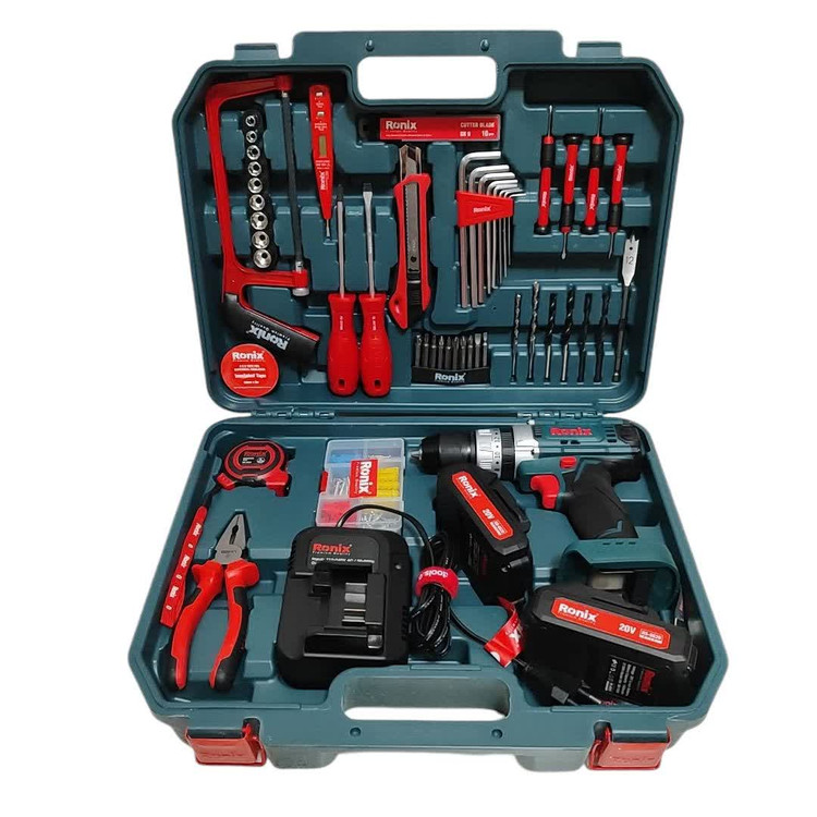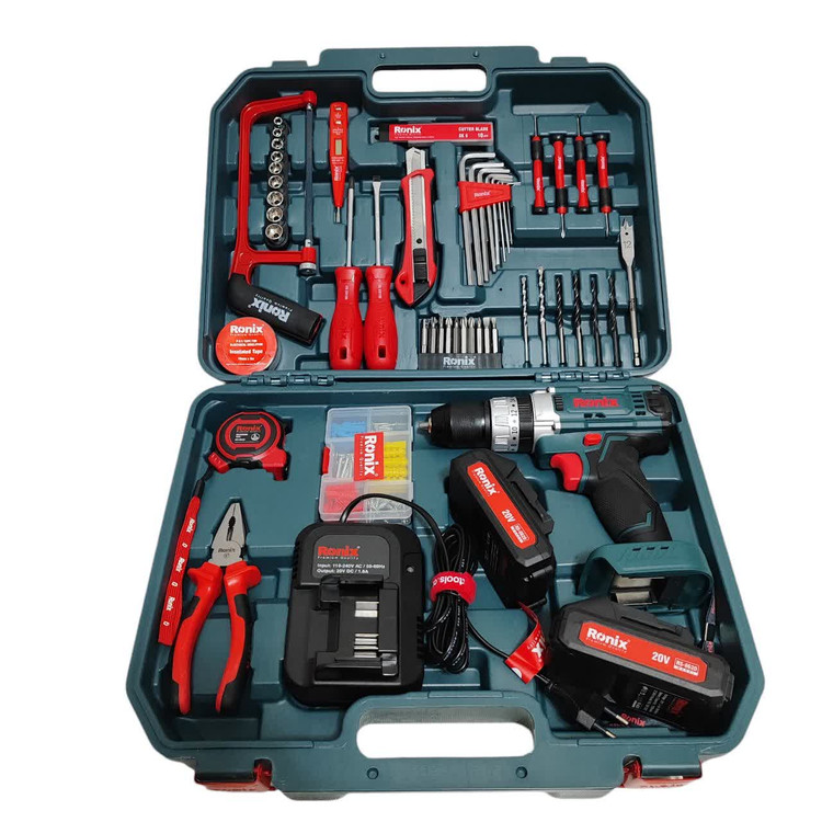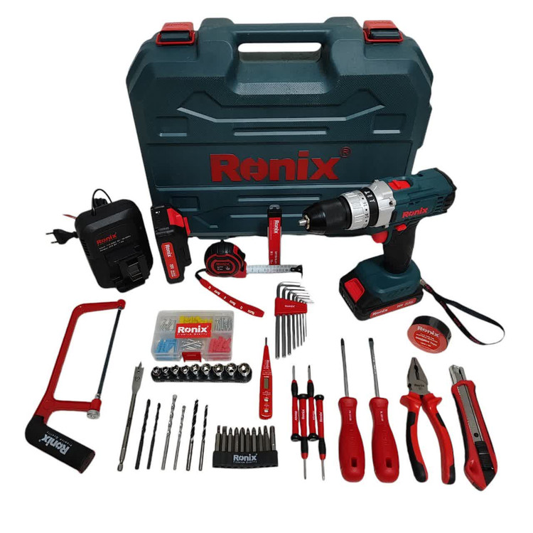 کیت دریل چکشی شارژی رونیکس 20 ولت مدل RS-8620 دو باتری ویژگی های محصول محتوی یک عدد دریل شارژی 20 ولت مدل 8620 با موتور قدرتمند و قابلیت سوراخکاری چکشی 53 پارچه بدنه دریل ضد ضربه به همراه روکش لاستیکی مقاوم قابلیت کارکرد دریل شارژی در دو حالت دور پایین و دور بالا جهت انواع کاربری ها قابلیت تنظیم گشتاور دریل در ۱۸ حالت متنوع جهت کاربری دقیق در حالت پیچ گوشتی دریل شارژی مجهز به چراغ LED جهت کار در محیطهای کم نور یا تاریک دریل شارژی چکشی و مجهز به سه نظام فلزی مقاوم دارای دو عدد باطری ۲۰ ولت لیتیوم یونی و شارژر سریع به همراه متر، کاتر رونیکس، ست آچار آلن، انواع پیچگوشتی، کمان اره و مجموعه ای کامل از متهها، سریهای بکس و پیچگوشتی، فازمتر دیجیتال، لنت برق و جعبه رولپلاک داخل كيف BMC مقاوم گارانتی 12 ماهه