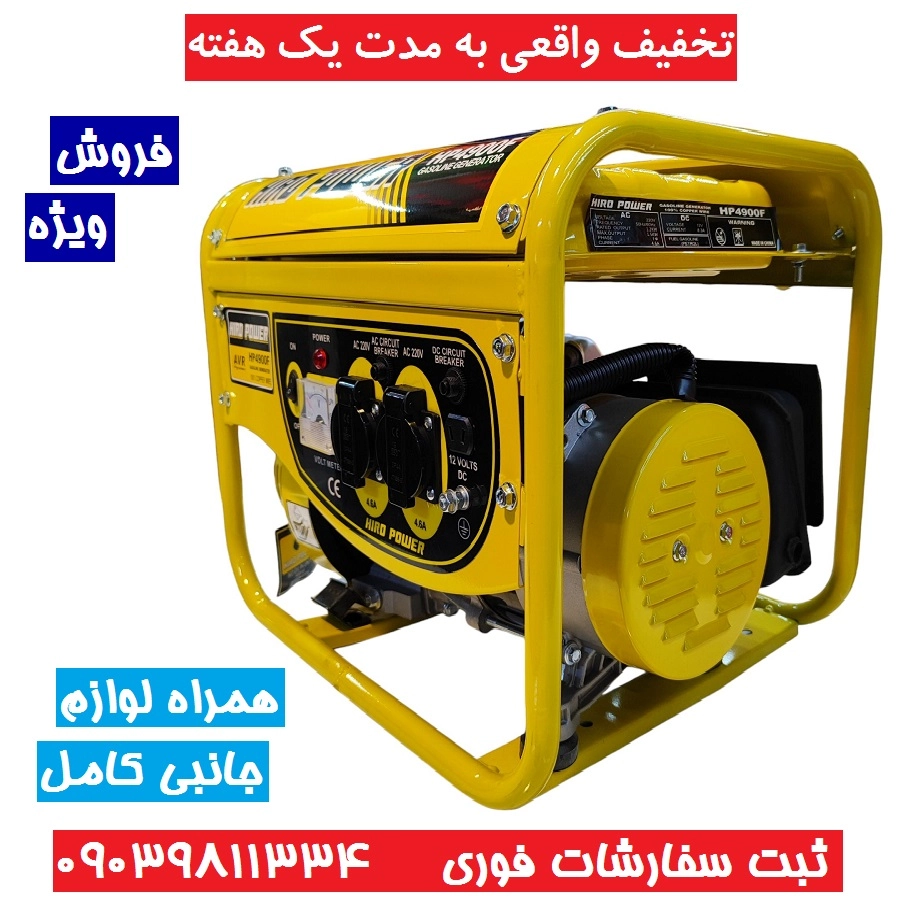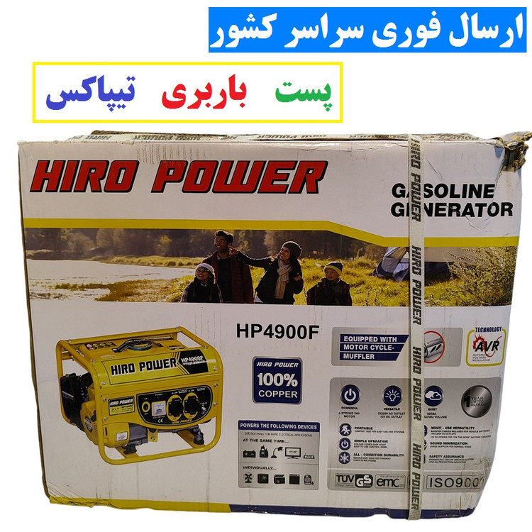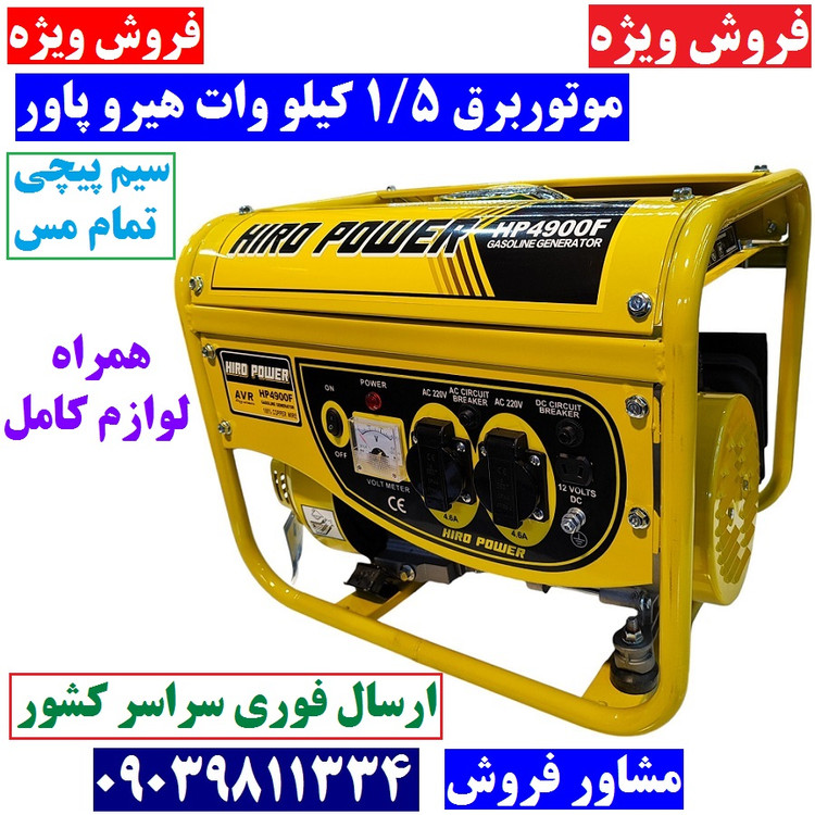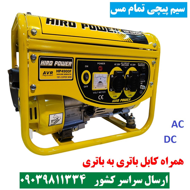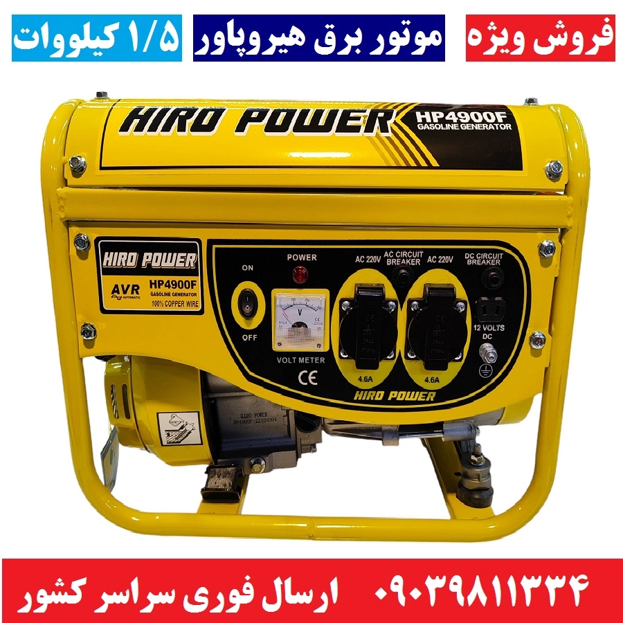 موتور برق 1500 وات هیروپاور مدل HIRO POWER HP4900F موتور برق 1/5 کیلو وات هیرو پاور سیم پیچی تمام مس همراه کابل باتری به باتری و لوازم جانبی کامل