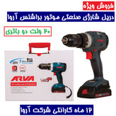 دریل پیچ گوشتی شارژی چکشی موتور براشلس 20 ولت دوباتری مدل 5854 آروا همراه کیف و کارت گارانتی شرکت اروا 5854