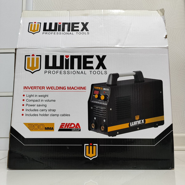 دارای کابل برق با طول 3 متر ساخته شده بر پایه تکنولوژی MOSFET دارای کابل جوش 2.5 متری دارای کابل اتصال برق 1.5 متری قابلیت تنظیم شدت جریان آمپر قابلیت تنظیم نفوذ قوس الکتریکی دارای گارانتی 12 ماهه اهدا سرویس ساخت کشور چین محصولی که مشاهده میفرمایید دستگاه اینورتر جوشکاری مدل (EHDA 66173211) نام دارد. این محصول یکی از تولیدات شرکت « وینکس» (Winex) بهحساب میآید. این دستگاه با ابعاد 37 × 30 × 15 سانتیمتر از وزن قابل قبولی نیز برخوردار است. دستگاههای جوش اینورترنسبت به دستگاههای جوش سنتی دارای وزن کمتر و قدرت جوش مستحکمتر و یکنواختتری هستند. همچنین این محصولات باعث صرفهجویی در مصرف برق میشوند و درعینحال قیمت مناسبتری نسبت به دستگاههای جوش سنتی دارند. این محصول دارای خروجی 200 آمپر بوده و برای تأمین انرژی موردنیاز خود به ولتاژ 220 ولت احتیاج دارد. برای تولید این اینورتر از تکنولوژی MOSFET استفاده شده است. همچنین این دستگاه دارای کلید باکیفیت جهت روشن/خاموش نمودن دستگاه و همچنین دو کلید (ولوم) جهت تنظیم مقدار خروجی جریان برق و مقدار عمق جوشکاری است. در قسمت جلوی این دستگاه یک چراغ LED تعبیه شده که در صورت اضافه جریان هشدار میدهد. باوجود صفحه نمایشگر دیجیتال روی دستگاه میتوان مقدار خروجی آمپر را بهراحتی رؤیت و با توجه به نوع قطعه کار مقدار آمپر خروجی را تنظیم نمود. از متعلقات این دستگاه میتوان به انبر جوش باکیفیت به همراه 2.5 متر کابل، انبر اتصال به همراه 2.5 متر کابل، ماسک جوشکاری و دستکش اشاره نمود.