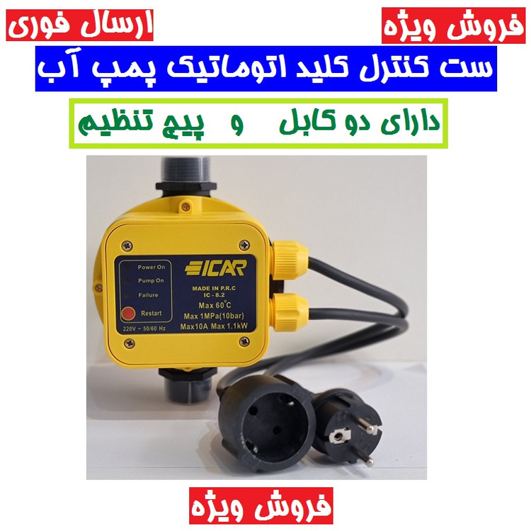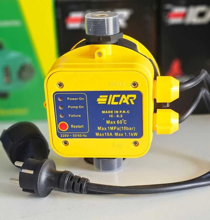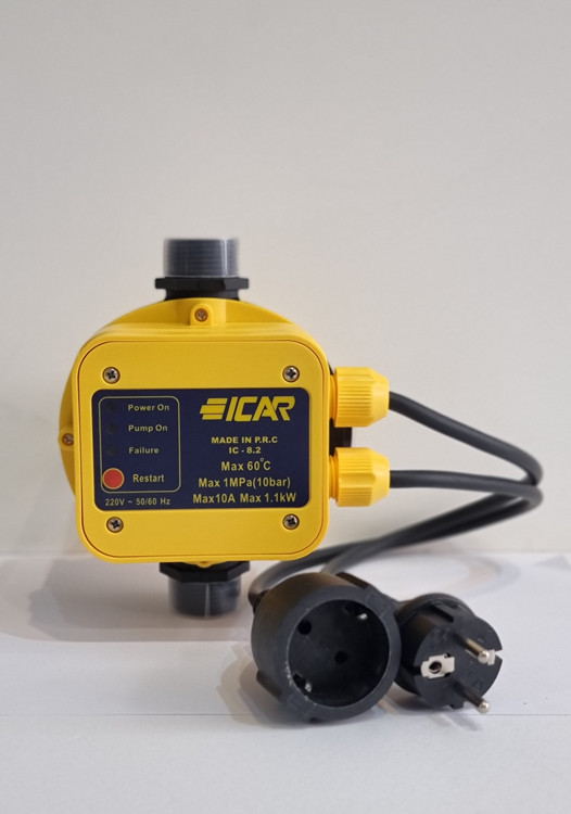 ست کنترل پمپ آب ایکار مدل ICAR IC-8.2 ، یکی از پر مصرف ترین و شناخته شده ترین ست کنترل های موجود در بازار است که به دلیل رنگ زرد آن کاملا” قابل شناخته شدن است. طول عمر بالا ، کیفیت ساخت عالی و دقت عملکرد از ویژگی های ست کنترل ایکار است. ست کنترل پمپ آب ایکار مدل ICAR IC-8.2 ست کنترل وسیله ای است که جهت روشن و خاموش کردن اتوماتیک پمپ آب خانگی مورد استفاده قرار می گیرد. اساس عملکرد ست کنترل بر مبنای جریان عبوری است. یعنی هنگامی که در مسیر آب خروجی یک شیر باز شود و یا به هر دلیل آب درون لوله مصرف شود، ست کنترل ، پمپ را روشن کرده و هنگامی که مصرف آب متوقف شود ، پمپ را خاموش می کند. یکی از مزایای ست کنترل عدم نیاز به منبع آب تحت فشار پمپ همراه با آن است. البته ست کنترل بیشتر مناسب استفاده در منازل با تعداد ساکنین کم است ( برای مثال خانه های یک یا دو طبقه و یا ویلا ) چرا که با هر مقدار تقاضای آب ( هرچند کم ) باعث روشن شدن پمپ می شود. این در حالی است که کلید اتومات مکانیکی پمپ از آنجایی که بر مبنای فشار آب ، پمپ را استارت می زند، نسبت به مصرف کم آب بی اثر بوده و مادامی که فشار آب در لوله از مقدار تعیین شده پایین تر نیاید ، پمپ را روشن نمی کند. این امر از روشن و خاموش شدن مکرر پمپ آب جلوگیری می کند. ست کنترل پمپ آب ایکار مدل ICAR IC-8.2 ، یکی از پر مصرف ترین و شناخته شده ترین ست کنترل های موجود در بازار است که به دلیل رنگ زرد آن کاملا” قابل شناخته شدن است. طول عمر بالا ، کیفیت ساخت عالی و دقت عملکرد از ویژگی های ست کنترل ایکار است. این محصول ساخت چین بوده اما از نظر کیفیت با بسیاری از برند های اروپایی رقابت می کند.