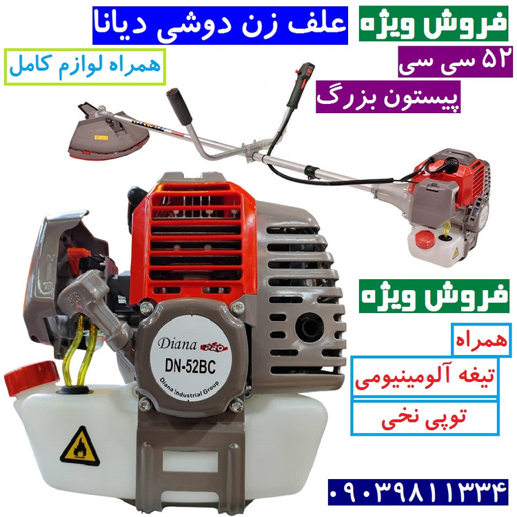 علف زن دوشی 52 سی سی دیانا همراه توپی و تیغه آلومینیوم مدل DN.52BCB با لوازم کامل ارسال سراسر کشور