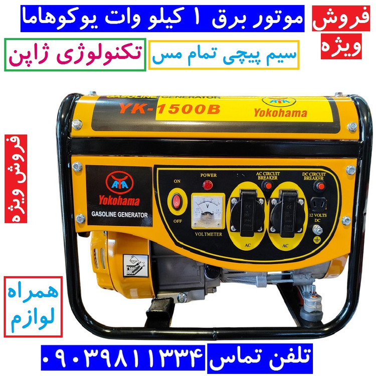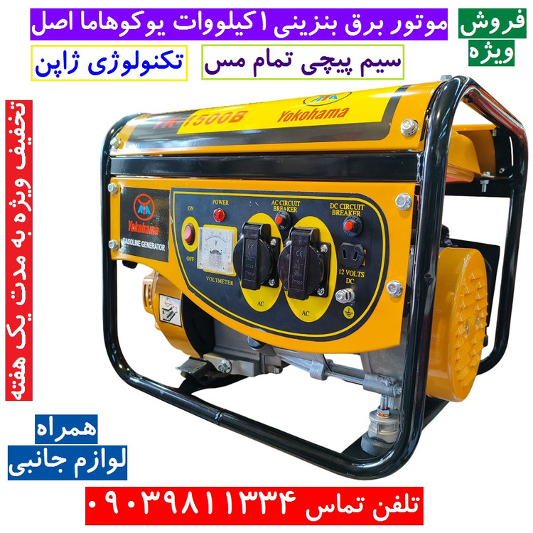 موتور برق مسافرتی یوکوهاما تکنولوژی ژاپن (Yokohama) 1 کیلو وات مدل YK-1500B (با لوازم ) مناسب کمپ بازار روز و ...