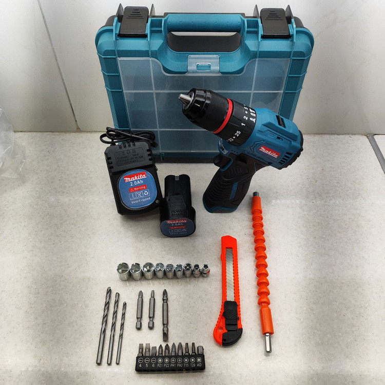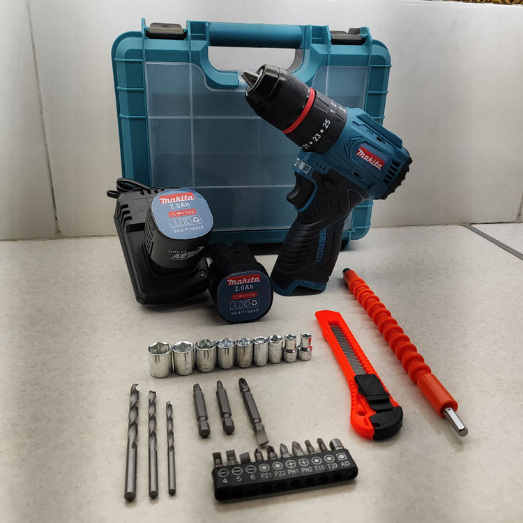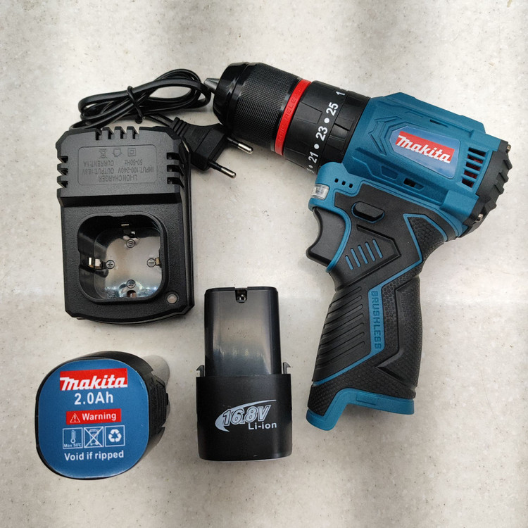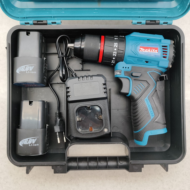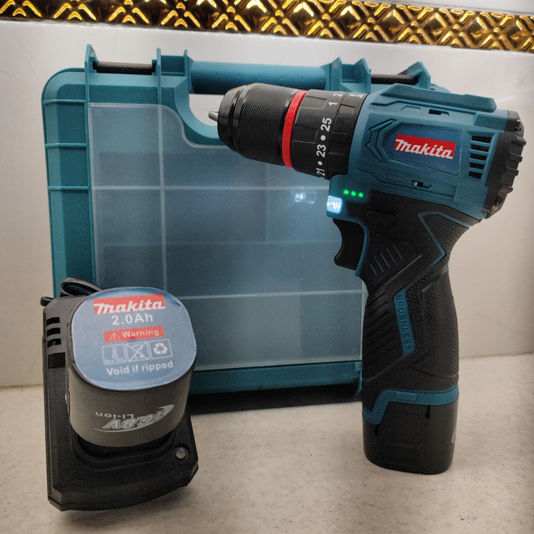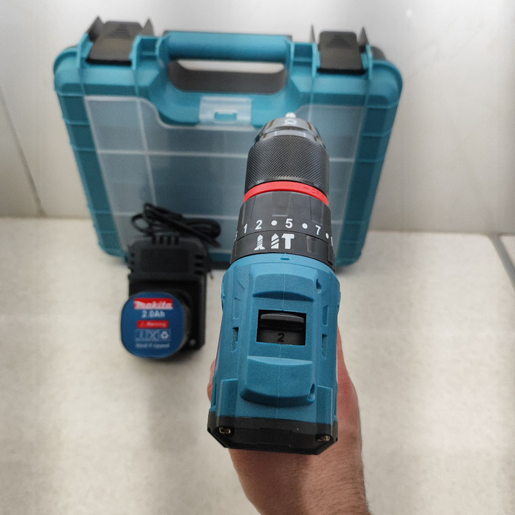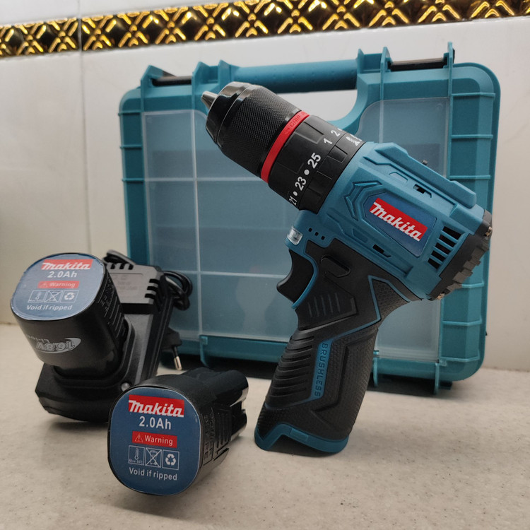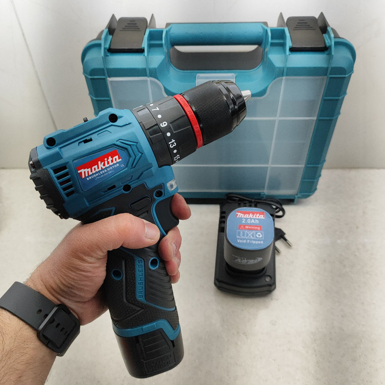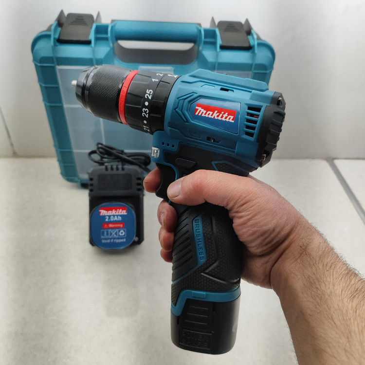 دریل شارژی صنعتی ماکیتا دوباتری سه نظام فلزی موتور براشلس همراه کیف و لوازم کامل پیچگوشتی شارژی ماکیتا