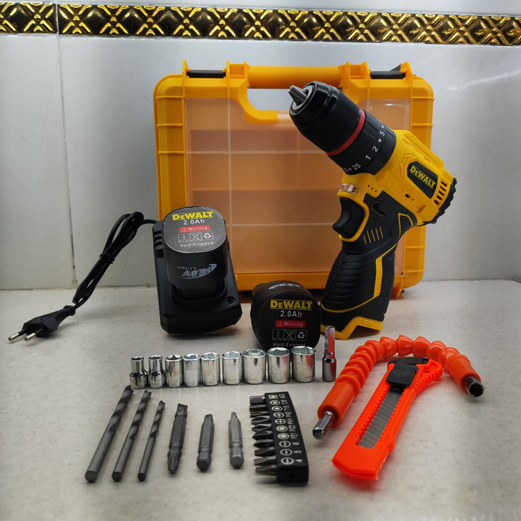دریل شارژی چکشی 24 ولت دیوالت دوباتری سه نظام فلزی 13 پیچگوشتی شارژی دیوالت با کیف و لوازم جانبی کامل دارای دو عدد باطری د️ریل سه حالته (چکشی،دریل،پیچ بند) ️سه نظام اتومات فلزی دارای دیمر کنترل سرعت ️ظرفیت مته13 میلی متر ️گیربکس دوحالته (سرعتی،قدرتی) چپ گرد و راست گرد س️اخت چین ️طراحی ارگونومیک برای سهولت در کار ️همراه لوازم کاربردی مطابق تصویر ️دارای جعبه حمل سبک وزیبا ویژگیهای دریل سیستم گردش چپگرد سیستم گردش راستگرد قابلیت کنترل سرعت قفل سوییچ منبع تغذیه باتری مشخصات سهنظام اتوماتیک فلزی توضیحات باتری دارای دوعدد باتری پرقدرت سایر توضیحات امکان تنظیم در سه حالت چکشی ، ساده و پیچ گوشتی دارای کلاچ همراه لوازم جانبی کامل و ساک bmc