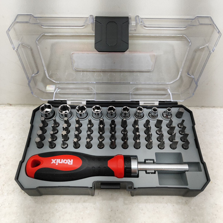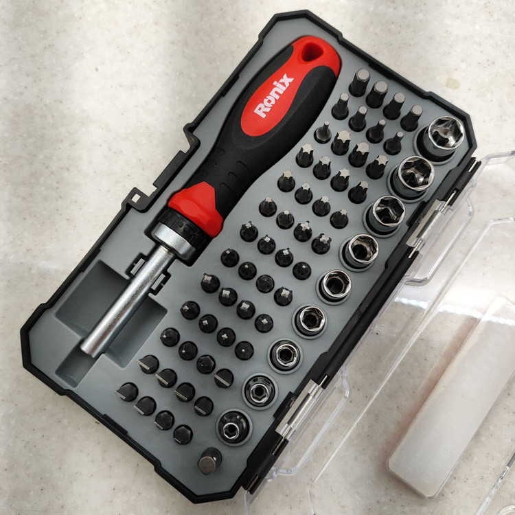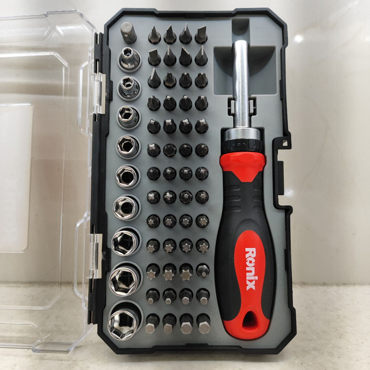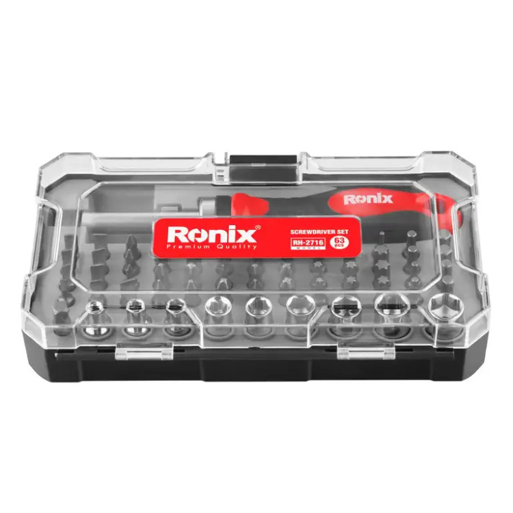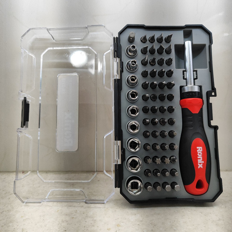 - مجموعهای شامل64 عدد بیت ، بکس و دسته جغجغه برای برآورده کردن نیازهای مختلف کاربران تولید شده و مناسب برای تعمیر کامپیوتر ،موبایل،ساعت و ... میباشد - ساخته شده از جنس کروم وانادیوم و عملکرد کامل ابزار در استفادههای طولانی مدت را تضمین میکنند - دارای نوکهای سختکاری شده و با مقاومت بالا - طراحی حرفهای رونیکس برای دسته جغجغه که باعث ایجاد تعادل میان سرعت و گشتاور در اتصالات مختلف میشود توضیحات ست 64 عددی سری بیت و بکس رونیکس مدل RH-2716، مجموعهای کاربردی از سریهای پیچ گوشتی دوسو، سریهای پیچ گوشتی چهارسو، سریهای پیچ گوشتی ستارهای، سریهای پیچ گوشتی چهارسو خاردار، سریهای آلنی و سریهای بکس میباشد. تمام قطعات فلزی این مجموعه 64 عددی از آلیاژ کروم وانادیوم ساخته شدهاند و از مقاومت فوقالعاده بالایی برخوردار هستند. دسته جغجغه در این ست سری بکس و پیچ گوشتی، با طراحی حرفهای رونیکس ساخته شده است. این مجموعه 64 عددی در یک جعبه پلاستیکی مقاوم با درب شفاف به بازار ابزار ایران عرضه میشود. در بخش توضیحات محصول، بیشتر با مشخصات این ست کامل بیت و بکس رونیکس آشنا شوید. مشخصات جنس کروم وانادیوم متعلقات 1دو سو3 میلیمتر6.3*25 BITS، 1دو سو4 میلیمتر6.3*25 BITS، 3دو سو 5 میلیمتر6.3*25 BITS، 3دو سو 6 میلیمتر6.3*25 BITS،1دو سو7 میلیمتر6.3*25 BITS، 1عددPH0 6.3*25 BITS، 3عددPH1 6.3*25 BITS، 4عددPH2 6.3*25 BITS، 4عددPH3 6.3*25 BITS، 1عددPZ0 6.3*25 BITS، 3عددPZ1 6.3*25 BITS، 3عددPZ2 6.3*25 BITS، 2عدد PZ3 6.3*25 BITS، 1عدد T10 6.3*25 BITS، 2عدد T15 6.3*25 BITS، 2عدد T20 6.3*25 BITS، 2عدد T25 6.3*25 BITS، 2عدد T27 6.3*25 BITS، 2عدد T30 6.3*25 BITS، 2عدد T406.3*25 BITS، 1عدد H2 6.3*25 BITS، 2عدد H3 6.3*25 BITS، 2عدد H4 6.3*25 BITS، 2عدد H5 6.3*25 BITS، 2عدد H6 6.3*25 BITS، 1 عدد بکس 4 میلیمتر 1/4 Sochets، 1 عدد بکس 5 میلیمتر1/4 Sochets،1 عدد بکس 6 میلیمتر1/4 Sochets،1 عدد بکس 7میلیمتر1/4 Sochets،1 عدد بکس 8 میلیمتر1/4 Sochets،1 عدد بکس 9 میلیمتر1/4 Sochets،1 عدد بکس 10میلیمتر1/4 Sochets،1 عدد بکس 11 میلیمتر1/4 Sochets، 1 عدد بکس 12 میلیمتر1/4 Sochets