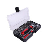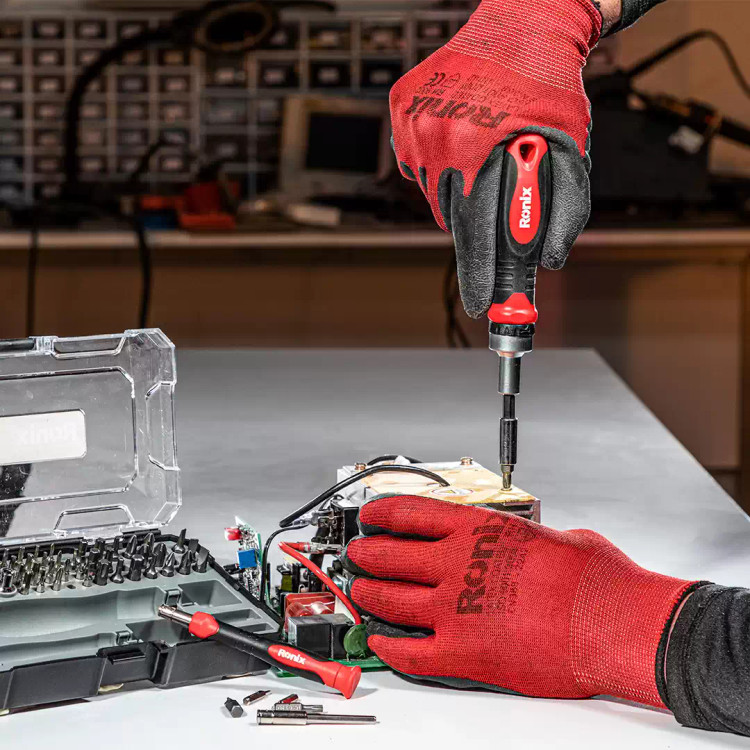 مجموعهای شامل56 عدد بیت ، بکس،رابط و دسته جغجغه برای برآورده کردن نیازهای مختلف کاربران تولید شده و مناسب برای تعمیر کامپیوتر ،موبایل،ساعت و ... میباشد - از جنس کروم وانادیوم که با کیفیت بالا ساخته میشوند و عملکرد کامل ابزار در استفادههای طولانی مدت را تضمین میکنند - دارای نوکهای سختکاری شده و با مقاومت بالا - طراحی حرفهای رونیکس برای دسته جغجغه که باعث ایجاد تعادل میان سرعت و گشتاور در اتصالات مختلف میشود توضیحات ست 56 عددی سری بیت و بکس رونیکس مدل RH-2717، مجموعه از یک کیت کامل حاوی سریهای پیچ گوشتی و بکس مختلف است تا با کمک آن بتوانید به راحتی قطعات مختلف را تعمیر کنید. تمام قطعات فلزی این مجموعه 56 تایی، از آلیاژ کروم وانادیوم ساخته شدهاند تا طول عمر و دوام بالایی را به کاربران ارائه دهند. دسته جغجغه در این ست سری بکس و پیچ گوشتی، با طراحی حرفهای رونیکس ساخته شده و موجب تعادل بین گشتاور و سرعت میشود. این مجموعه سری بکس و پیچ گوشتی در یک جعبه پلاستیکی مقاوم با درب شفاف به بازار ابزار ایران عرضه میشود. در بخش توضیحات محصول، بیشتر با مشخصات و متعلقات این مجموعه کامل بیت و بکس رونیکس آشنا شوید. مشخصات نوع بسته بندی جعبه پلاستیکی متعلقات 1 عدد دوسو 1.5 میلیمتر 4.0*28 BITS، 1 عدد دوسو 2 میلیمتر 4.0*28 BITS، 1 عدد دوسو 2.5 میلیمتر 4.0*28 BITS، 1 عدد دوسو 3 میلیمتر 4.0*28 BITS، 1 عدد دوسو 4 میلیمتر 6.3*25 BITS، 1 عدد دوسو 5 میلیمتر 6.3*25 BITS، 1 عدد دوسو 6 میلیمتر 6.3*25 BITS، 1 عدد PH000 4.0*28 BITS، 1 عدد PH00 4.0*28 BITS، 1 عدد PH0 4.0*28 BITS، 1 عدد PH1 4.0*28 BITS، 1 عدد PH1 6.3*25 BITS، 1 عدد PH2 6.3*25 BITS،3 عدد PH3 6.3*25 BITS،1 عدد PZ1 6.3*25 BITS،1 عدد PZ2 6.3*25 BITS،1 عدد PZ3 6.3*25 BITS، 1 عدد T6 4.0*28 BITS، 1 عدد T7 4.0*28 BITS، 1 عدد T8 4.0*28 BITS، 1 عدد T9 4.0*28 BITS، 1 عدد T10 4.0*28 BITS، 1 عدد T15 4.0*28 BITS، 1 عدد T20 4.0*28 BITS، 1 عدد T10 6.3*25 BITS، 1 عدد T10 6.3*15 BITS،1 عدد T20 6.3*25 BITS،1 عدد T25 6.3*25 BITS،1 عدد T30 6.3*25 BITS،1 عدد T40 6.3*25 BITS، 1 عدد H1.5 4.0*28 BITS، 1 عدد H2 4.0*28 BITS، 1 عدد H2.5 4.0*28 BITS، 1 عدد H3 4.0*28 BITS، 1 عدد H4 4.0*28 BITS، 1 عدد H3 6.3*25 BITS ، 1 عدد H4 6.3*25 BITS ،1 عدد H5 6.3*25 BITS ،1 عدد H6 6.3*25 BITS، 1 عدد بکس 4 میلیمتر 1/4 Sochets، 1 عدد بکس 5 میلیمتر 1/4 Sochets،1 عدد بکس 6 میلیمتر 1/4 Sochets،1 عدد بکس 7 میلیمتر 1/4 Sochets،1 عدد بکس 8 میلیمتر 1/4 Sochets،1 عدد بکس 9 میلیمتر 1/4 Sochets،1 عدد بکس 10 میلیمتر 1/4 Sochets،1 عدد بکس 11 میلیمتر 1/4 Sochets،1 عدد بکس 12 میلیمتر 1/4 Sochets، 1 عدد رابط روکش سیاه 6.3*50، 1 عدد رابط روکش نیکل 4.0*60، 1 عدد دسته جغجغه مستقیم، 1 عدد دسته رابط مستقیم، 1 عدد 4-6 چهارگوش (رابط) 6.3*25