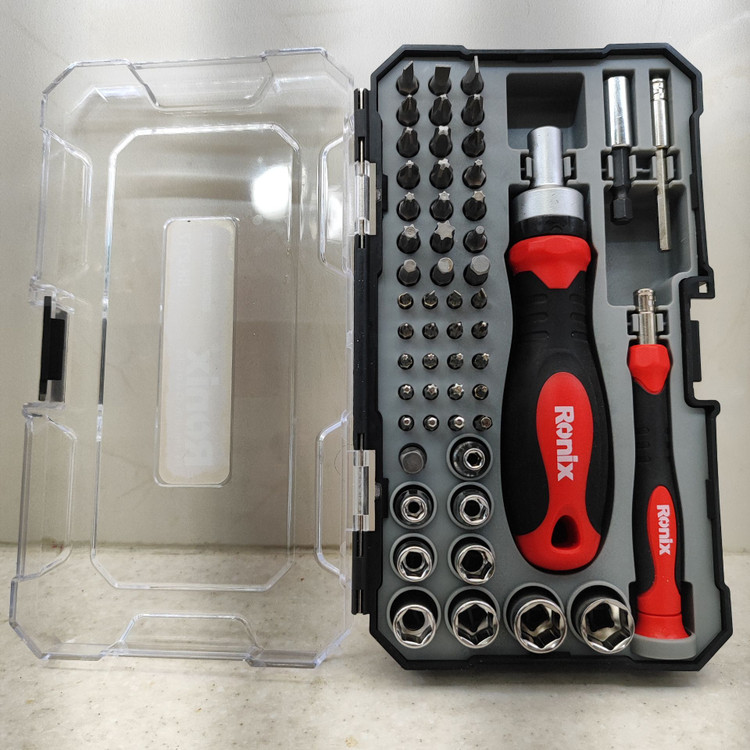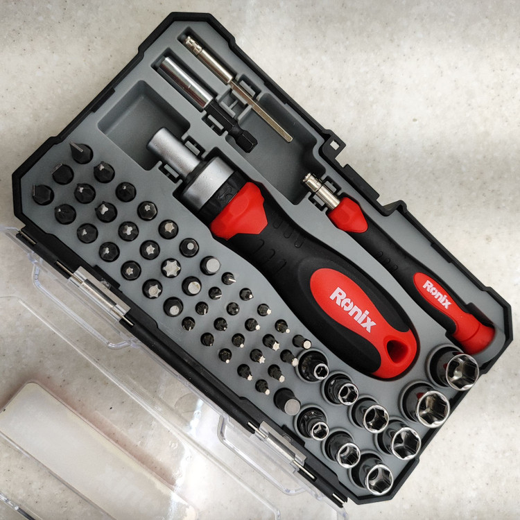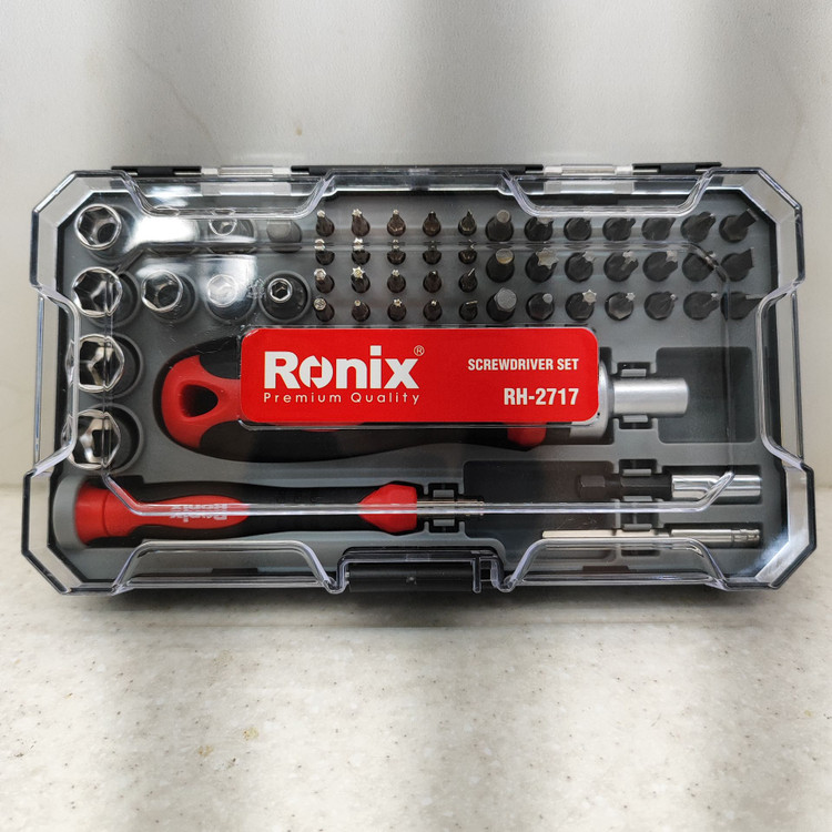 سری پیچگوشتی جغجغه ای ساعتی و سری بکس rh-2717 رونیکس مجموعه 55 عددی پیچ گوشتی جغجغه ای ساعتی و سری بکس رونیکس مدل RH-2717