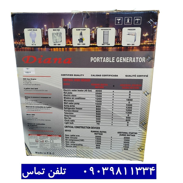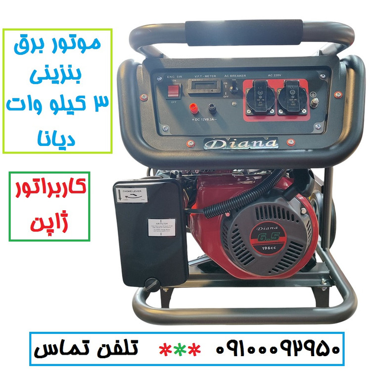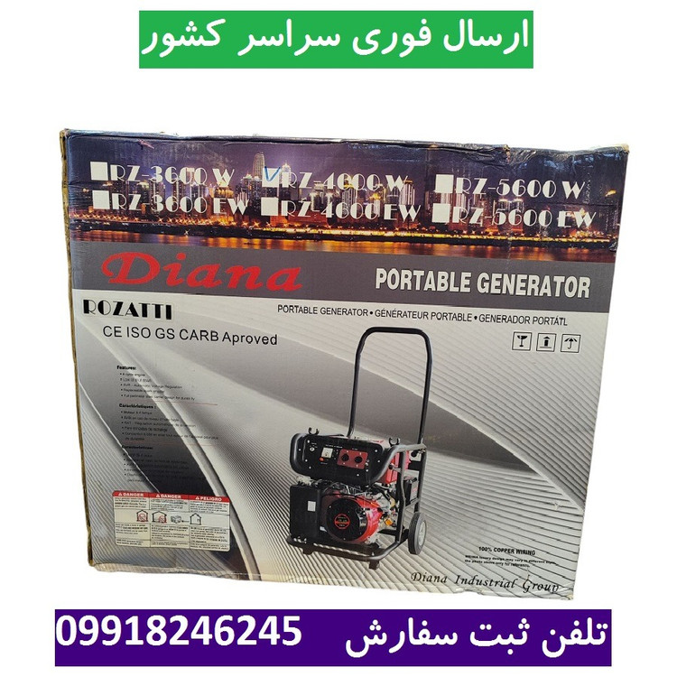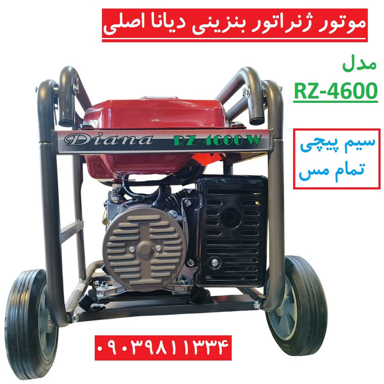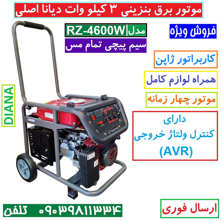 موتور برق دیانا 3KW مدل RZ-4600W سیم پیچی تمام مس موتور ژنراتور بنزینی 3 کیلو وات دیانا مدل rz-4600w