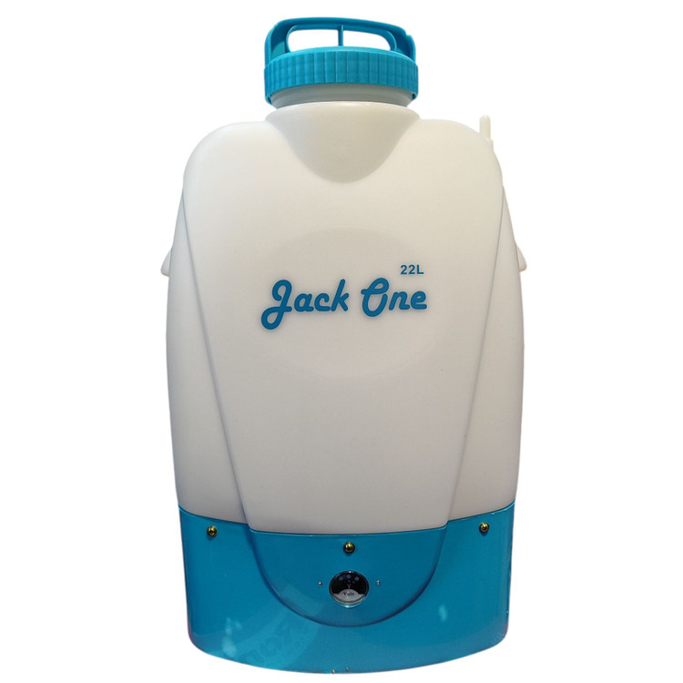 سمپاش شارژی دو موتوره جک وان دبل پمپ، سمپاشی بسیار قوی و از بهترین سم پاش های شارژی موجود در بازار فعلی می باشد. دو پمپ، دوموتوره و دبل پمپ از نام های دیگر این سمپاش می باشد. ظرفیت مخزن این سمپاش ۲۲ لیتر است. متریال مخزن بسیار با کیفیت و مقاوم است. باتری این سمپاش ۱۲ ولت، ۱۲ آمپر است. شارژر این ابزار فست شارژ بوده و در کمتر از ۷۵ دقیقه می توانید آن را به طور کامل شارژ نمایید. یک بار شارژ می تواند هشت ساعت سمپاشی را پشتیبانی کند.قدرت پمپ این ابزار ۶ لیتر در دقیقه می باشد. لانس آن تلسکوپی و جنس آن برنجی می باشد. لانس برنجی بسیار مقاوم است به راحتی قابل پاک کردن بوده و رسوب نمی گیرد. این سمپاش مجهز به فیوز است. فیوز از دستگاه در مقابل آسیبهای ناشی از نَوسانات، محافظت می کند. این سم پاش مجهز به عرق گیر است. بندهای حمایل طبی حمل آن را برای کاربر بسیار آسان نموده است.