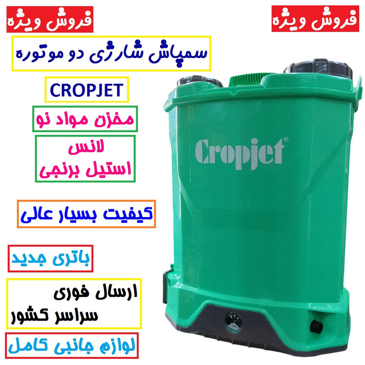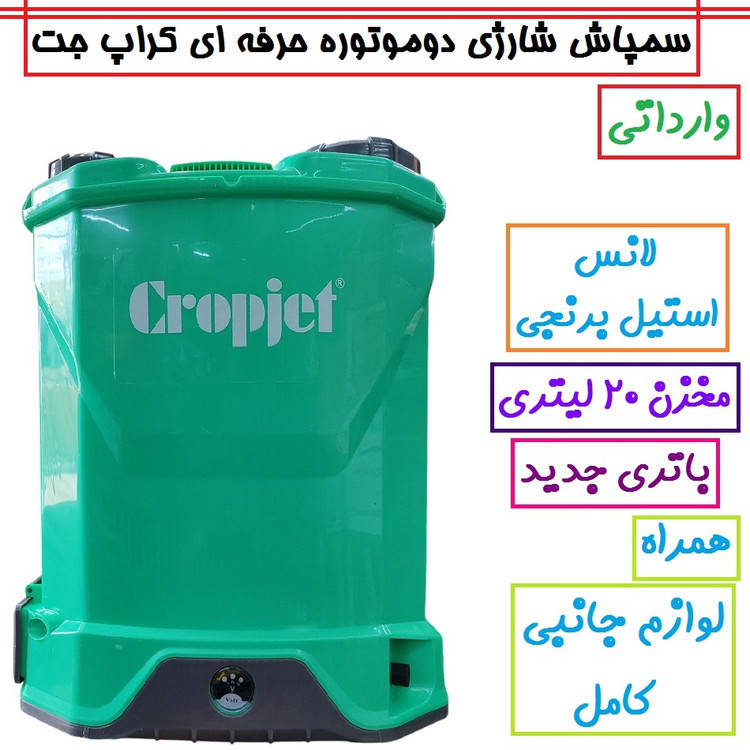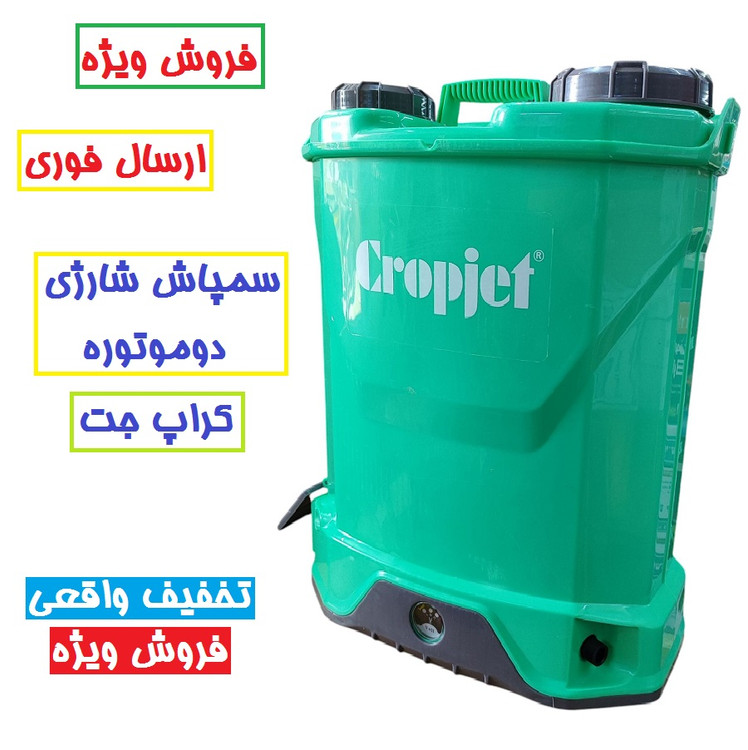 سمپاش شارژی 20 لیتری دو موتوره کراپ جت مدل Cj 20-4 وارداتی دابل پمپ همراه لوازم جانبی کامل سم پاش شارژی cropjet دو پمپه وارداتی