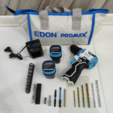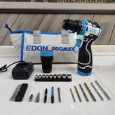 دریل شارژی 18 ولت دوباتری موتور براشلس طرح هیوندا ادون پرومکس پیچگوشتی شارژی سه نظام فلزی همراه کیف و لوازم