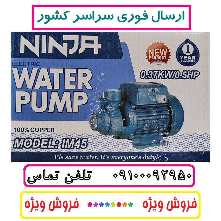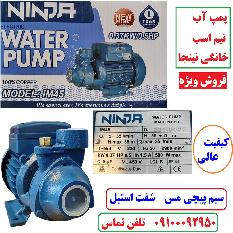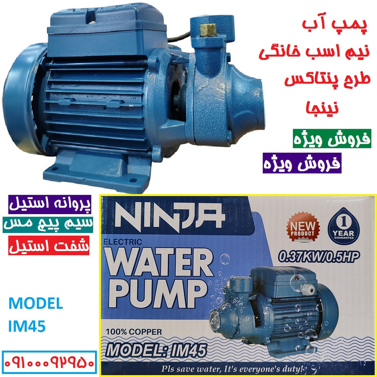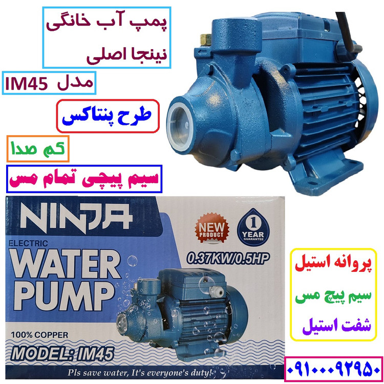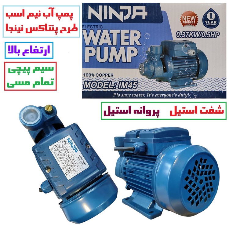 پمپ آب نیم اسب نینجا سیم پیچی تمام مسی سنگین ارتفاع بالا مدل IM45 . شفت استیل ضد زنگ مدل پنتاکسی کیفیت عالی