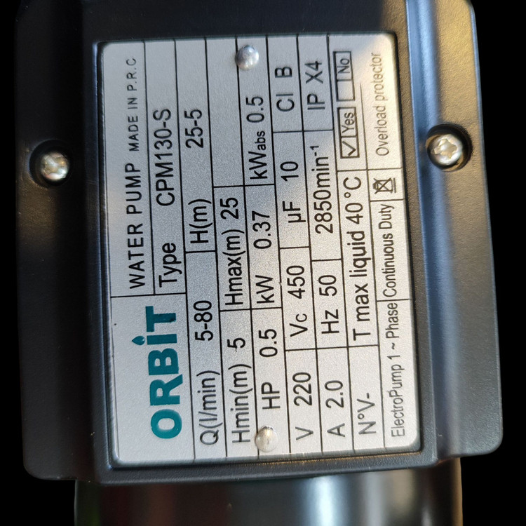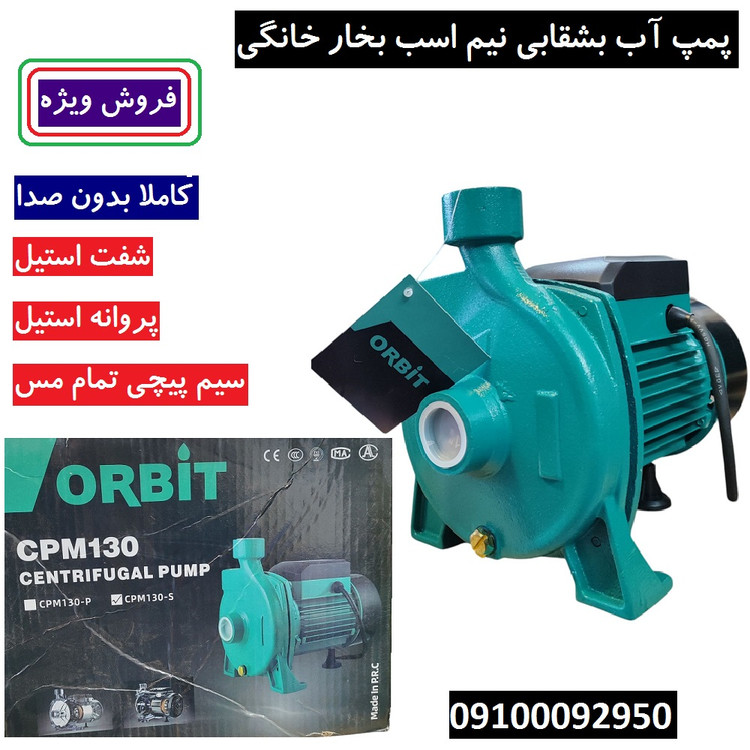 پمپ آب نیم اسب بشقابی اوربیت پروانه استیل سیم پیچی تمام مس بدون صدا کیفیت عالی مدل CPM130/S