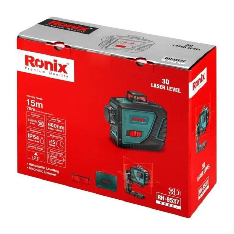 تراز لیزری سه بعدی 360 درجه رونیکس مدل RH-9537 همراه کیف و لوازم جانبی کامل تراز لیزری ۹۵۳۷ رونیکس 9537