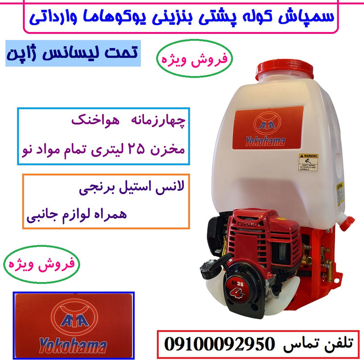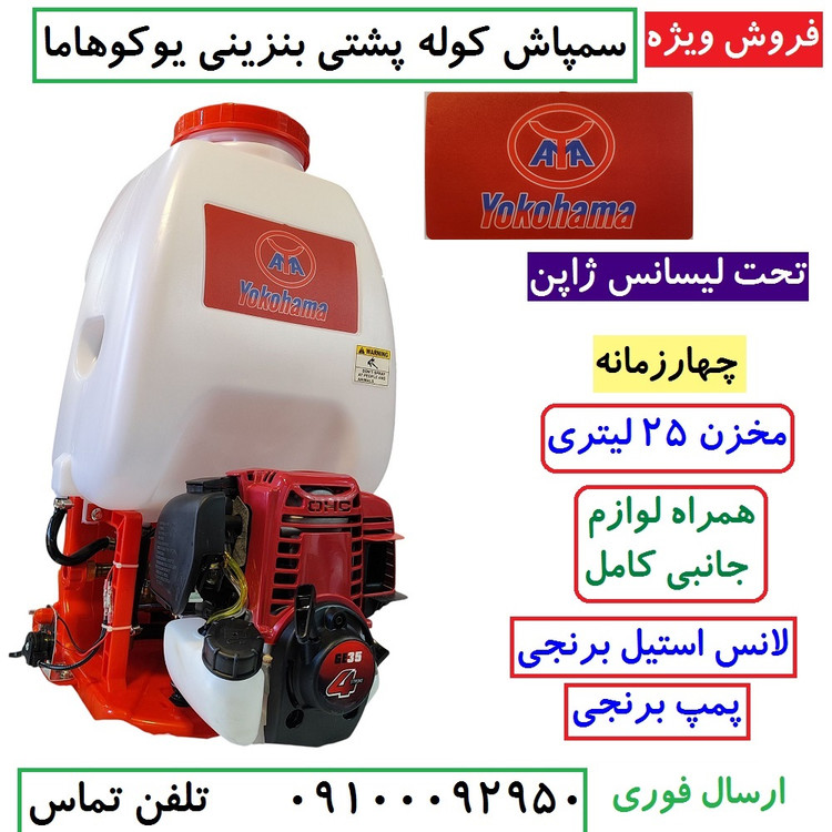 سمپاش موتوری کوله پشتی چهارزمانه یوکوهاما اصلی تکنولوژی ژاپن 25 لیتری با لوازم مطابق تصویر سم پاش یوکوهاما سم پاچ