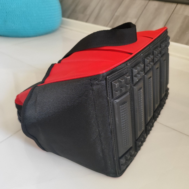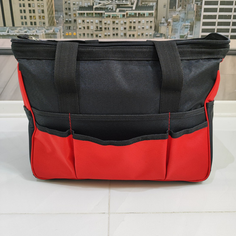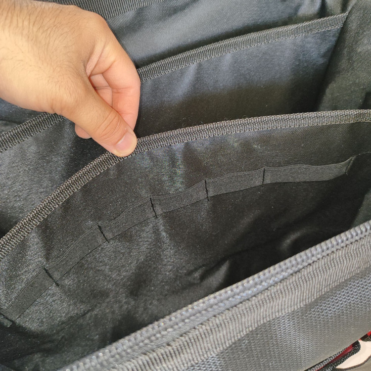 داخل کیف دارای محفظه جهت آویز لوازم میباشد ((( کف تمام دارای ضربه گیر ))) دارای جیب مخفی طول 42 سانتی متر ارتفاع 30 سانتی متر عمق 23 سانتی متر 1 زیپ اصلی درجه یک 15 جیب پارچه برزنتی اعلا دارای جای پیچگوشتی و فازمتر و سایر ابزار تقویت نقاط تحت فشار ساخته شده از بهترین متریال مجهز به 4 عدد پایه پلاستیکی مقاوم و با دوام مناسب جهت مصارف خانگی و صنعتی تولید شده از پارچه دو لایه درونی و بیرونی جهت تحمل بیش تر در برابر وزن بالا دارای زیپ دندانه بزرگ و روان و دسته دوبل مقاوم و مستحکم به کارگیری نوار مغزی فلزی جهت تقویت نقاط تحت فشار استفاده از با کیفیت ترین برزنت دورو دسته دو لایه و مقاوم
