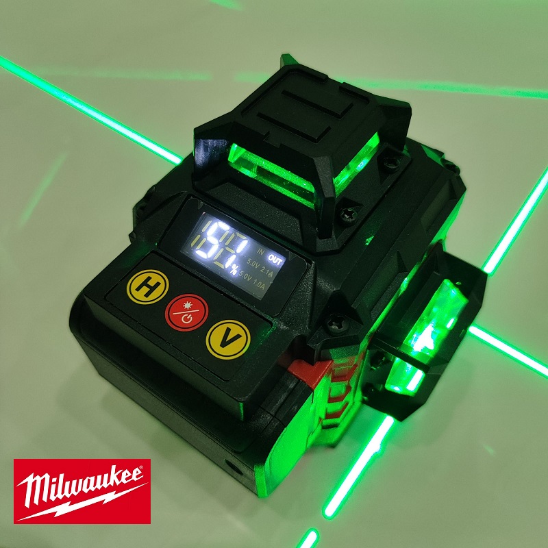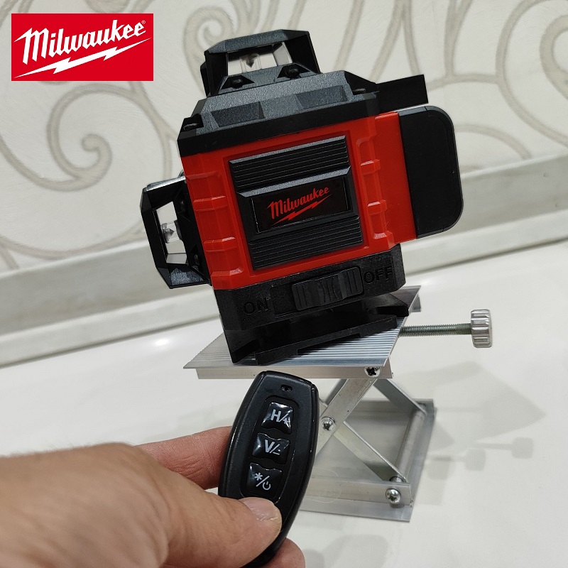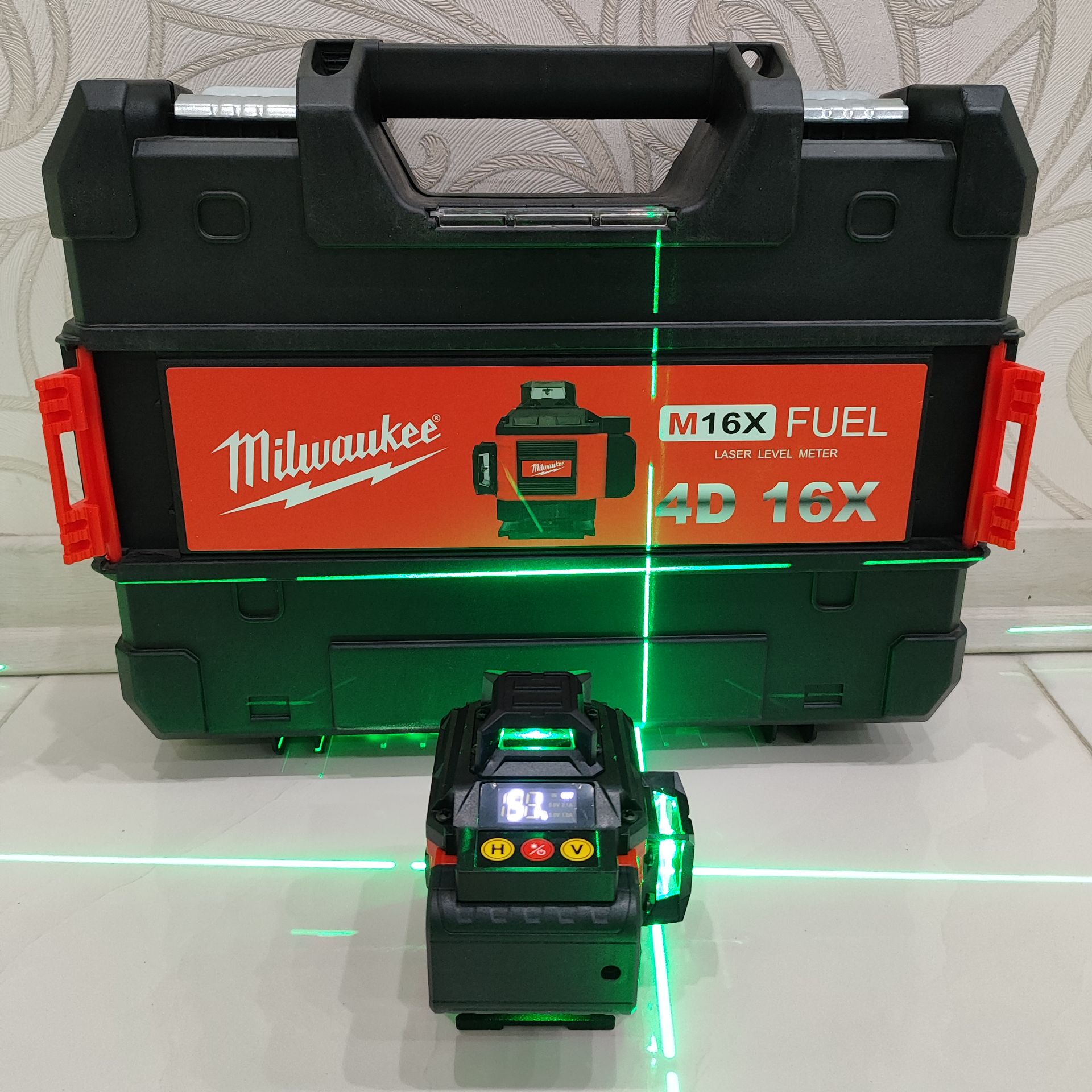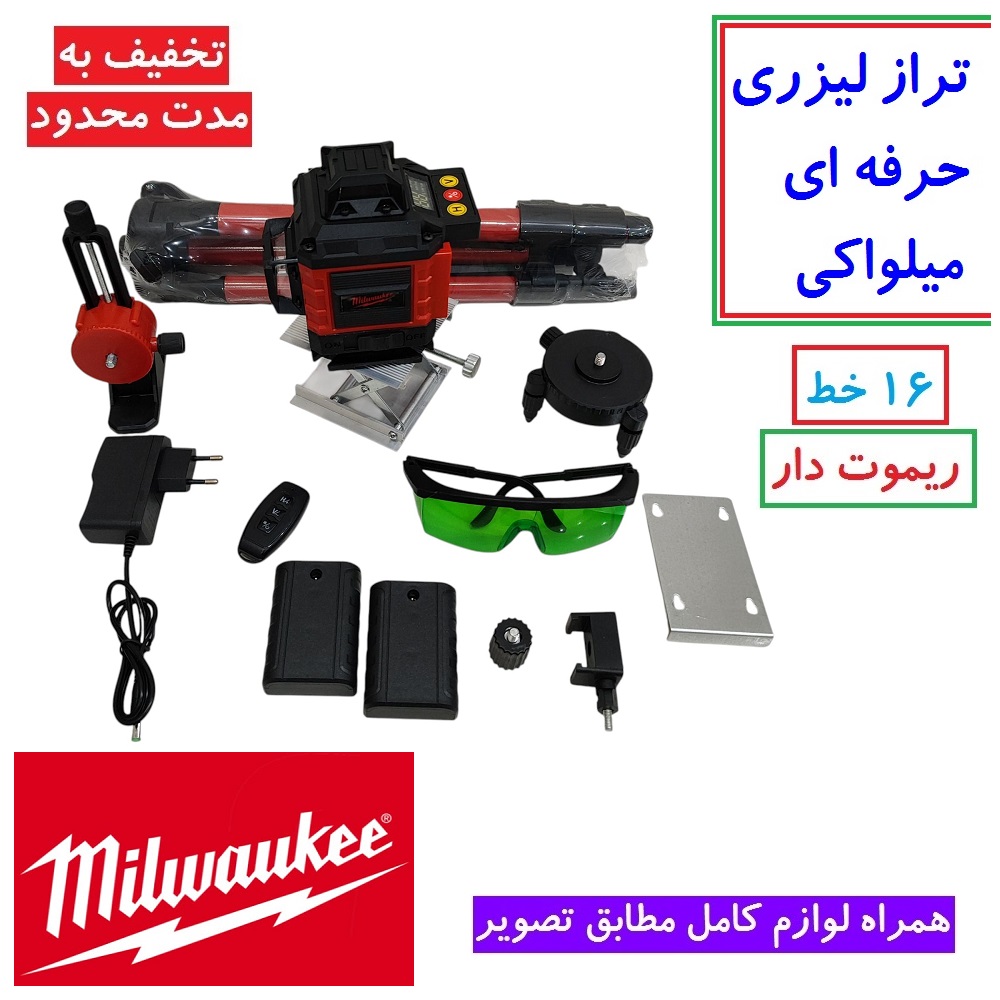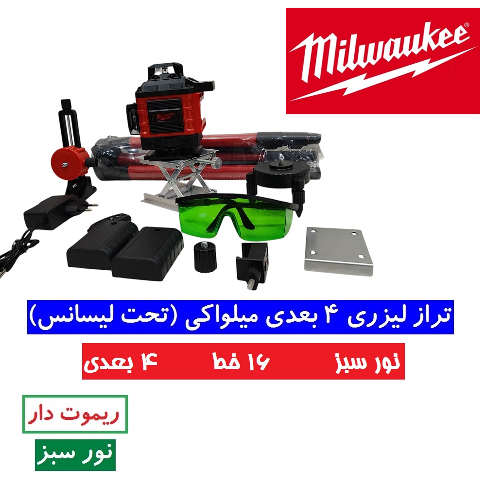 تراز لیزری حرفه ای نور سبز ریموت دار میلواکی 16 خط 4 بعدی 360 درجه همراه سه پایه و لوازم کامل