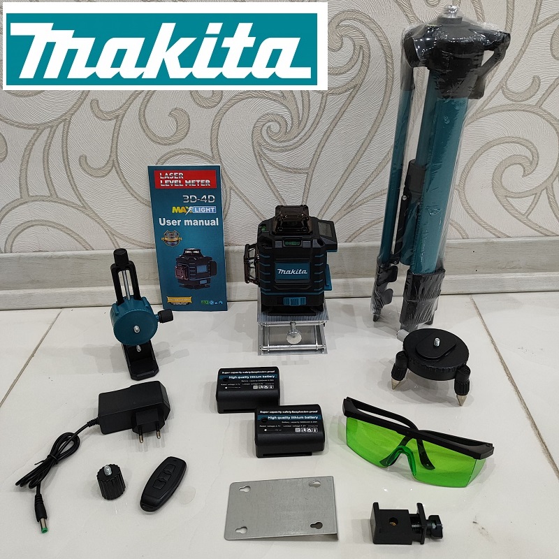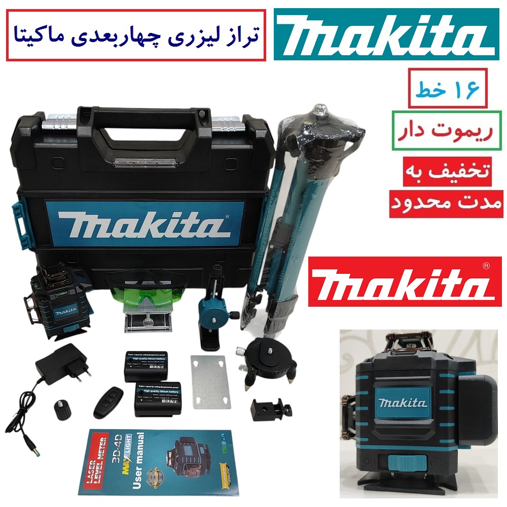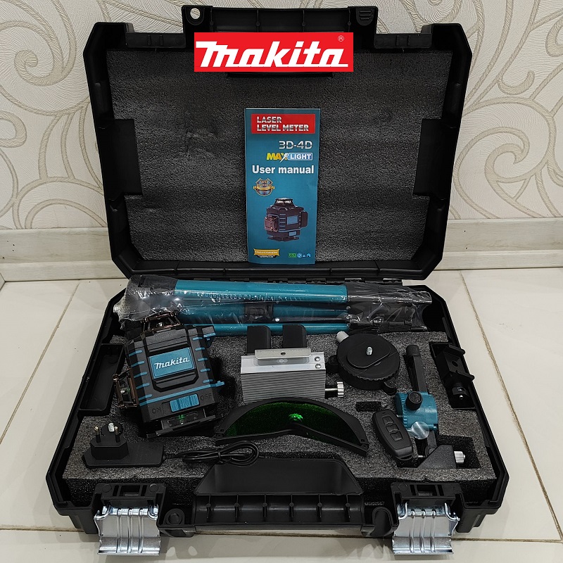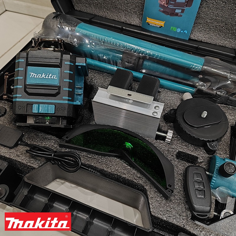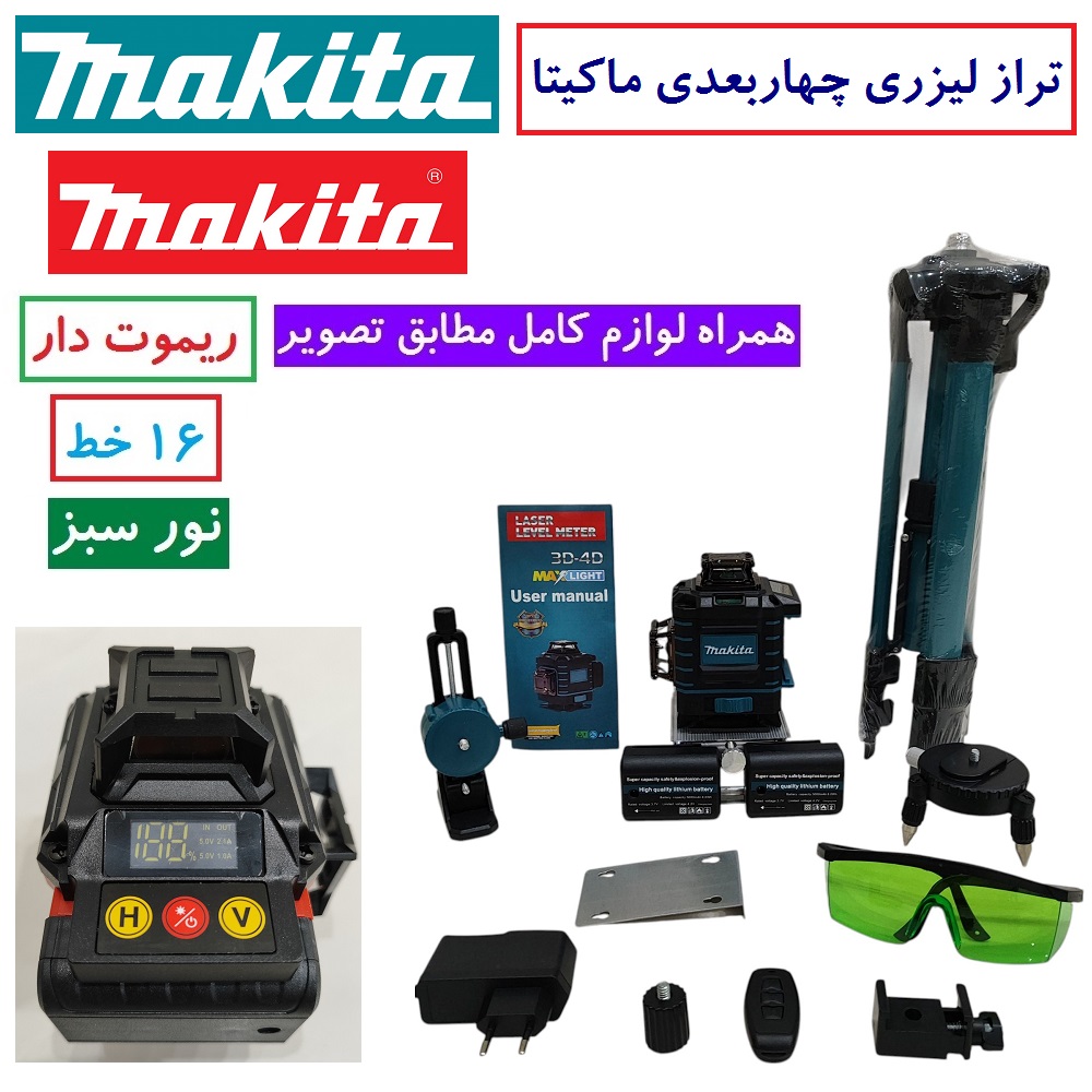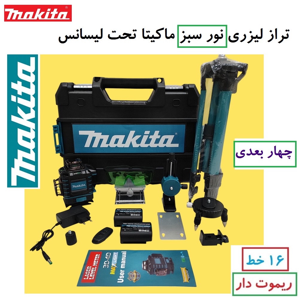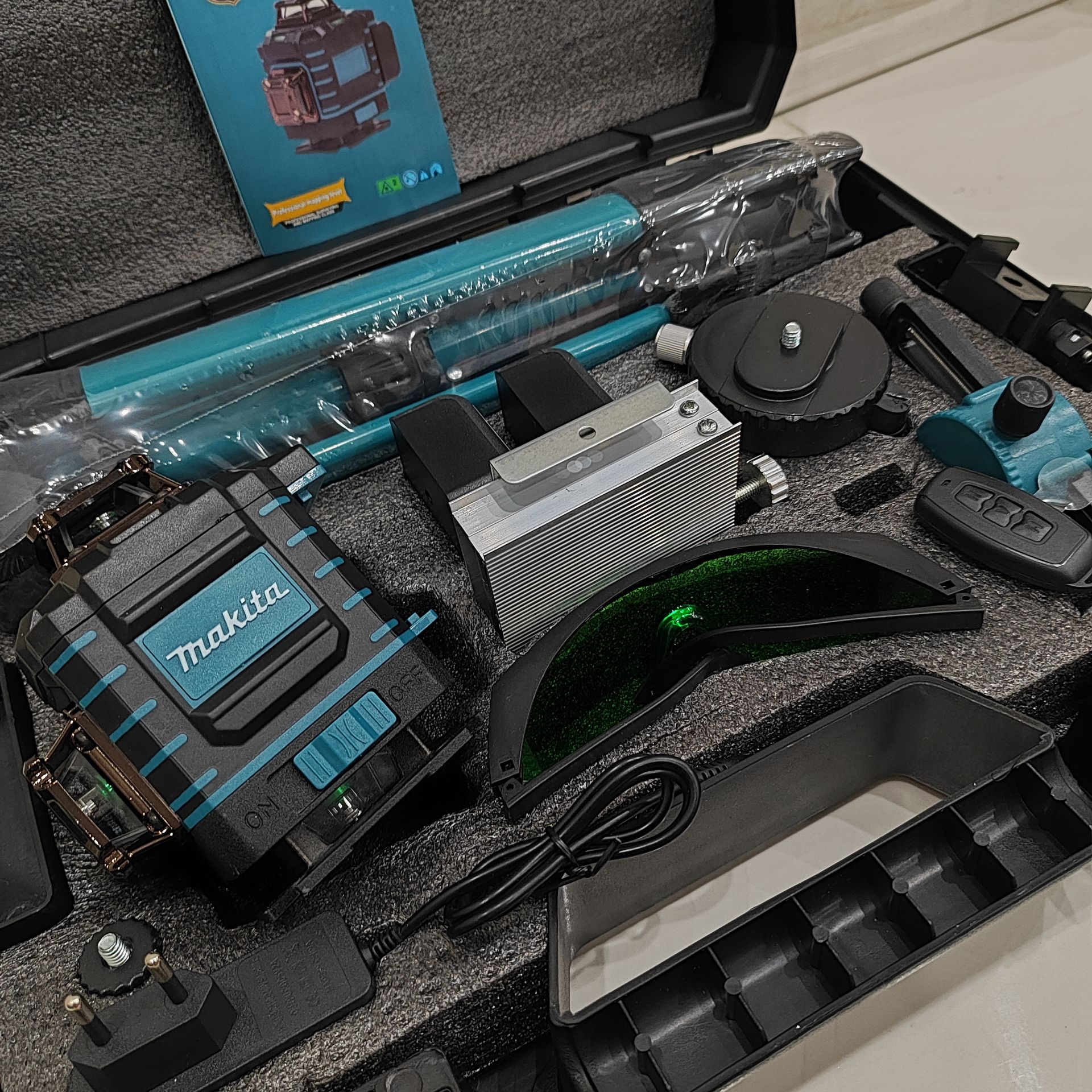 تراز لیزری حرفه ای نور سبز ریموت دار ماکیتا (تحت لیسانس) 16 خط 4 بعدی 360 درجه همراه سه پایه و لوازم کامل
