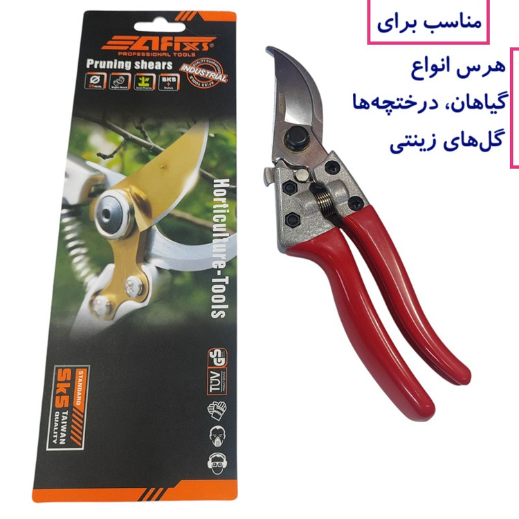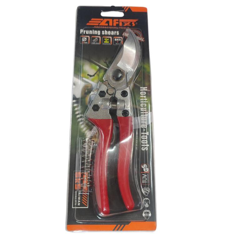 قیچی باغبانی آفیکس Afixs طرح فیسکارس تیغه فولادی سخت کاری شده دسته ضد لغزش دارای قفل ایمنی قیچی افیکس هرس باغ