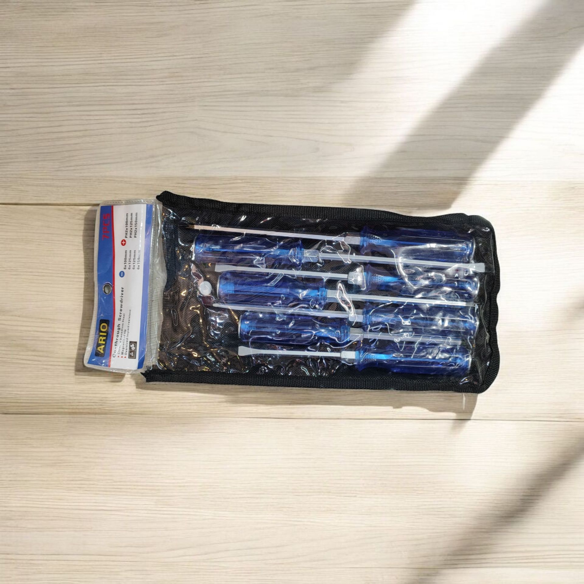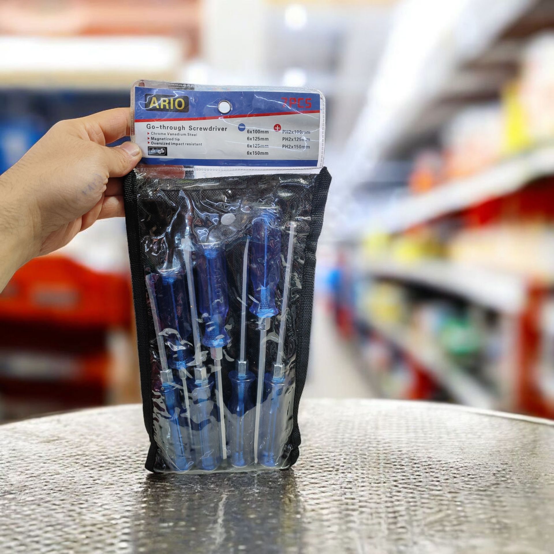 ست پیچ گوشتی 7 عددی برند ARIO دسته شیشه ای چهارسو و دوسو کیفیت کروم وانادیوم دارای کیف حمل مناسب مصارف خانگی