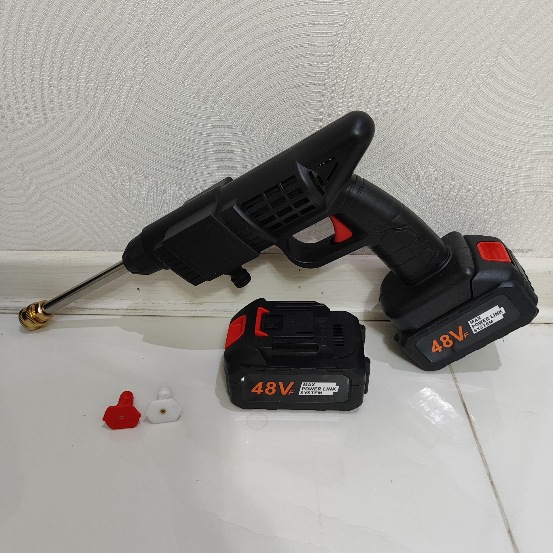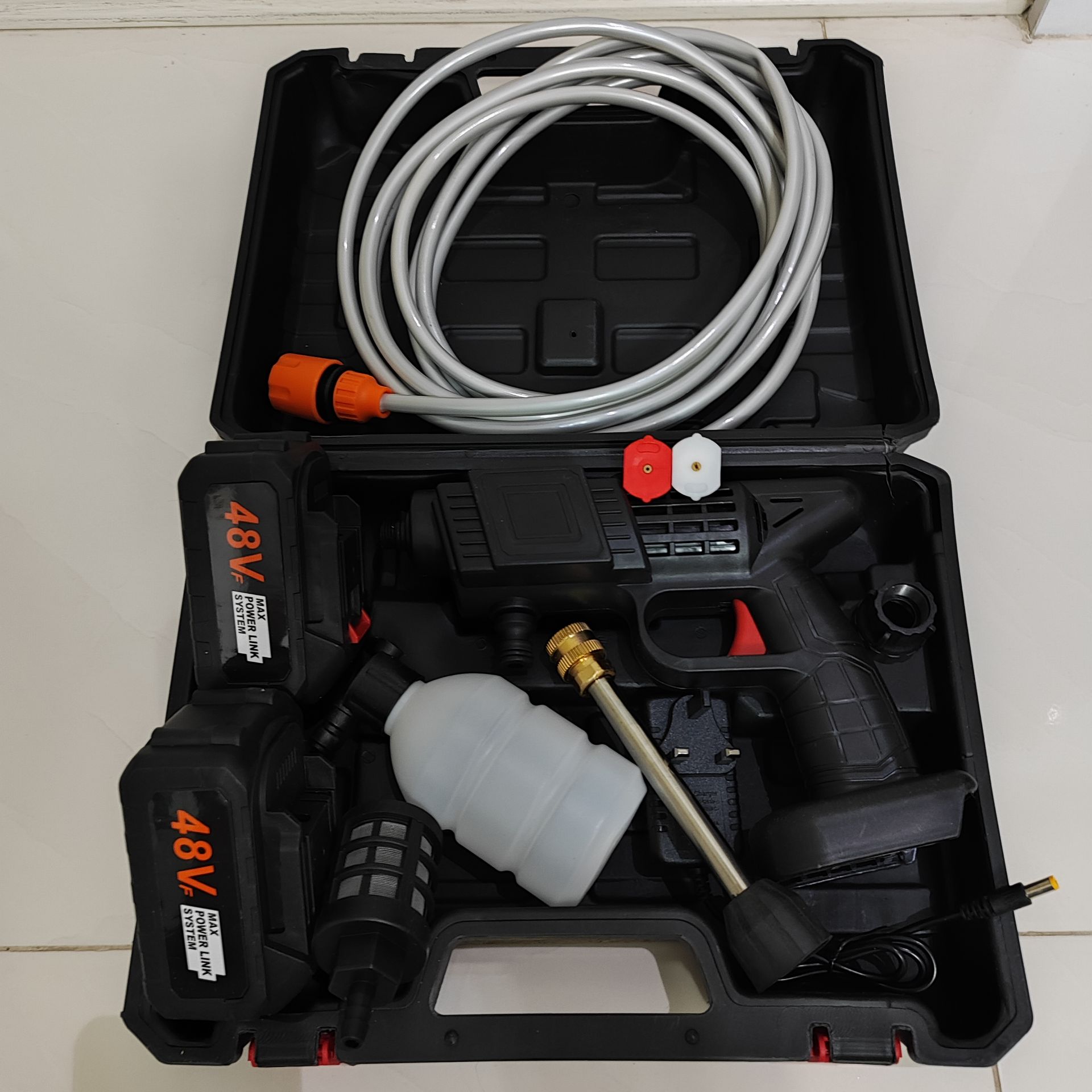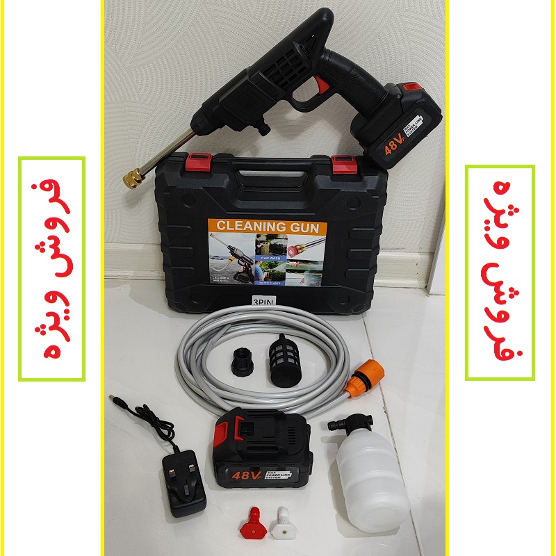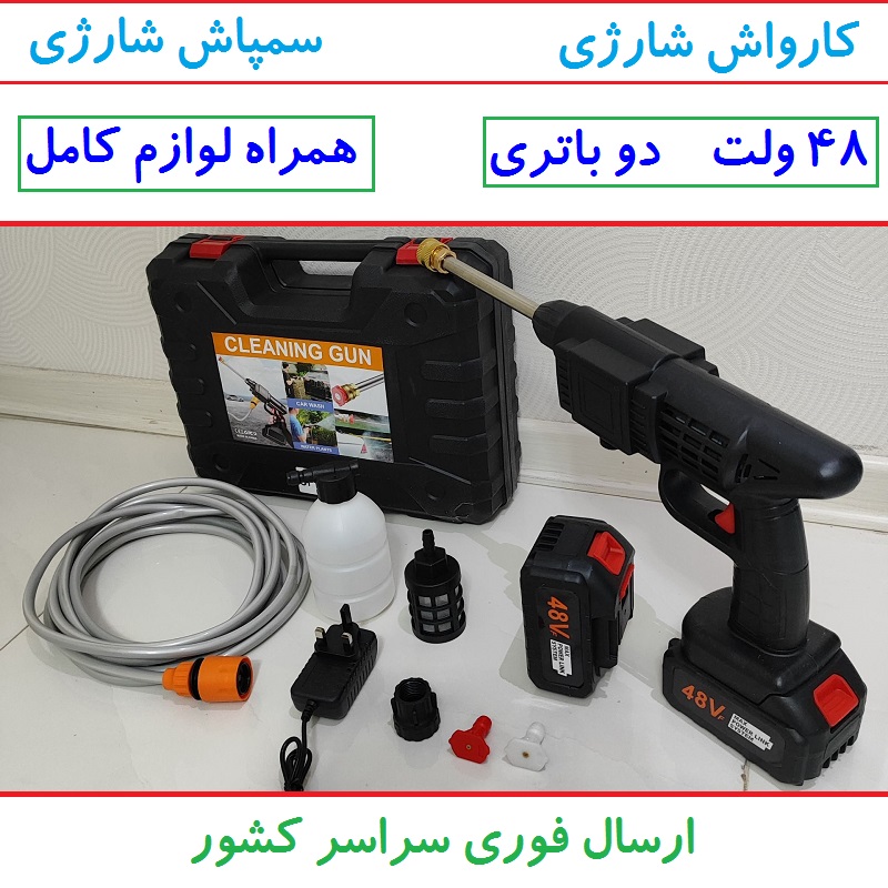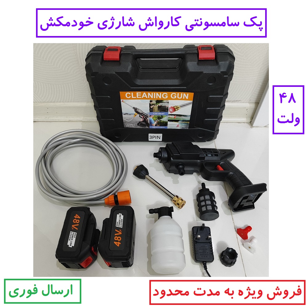 پک سامسونتی کارواش شارژی سمپاش شارژی خودمکش حرفه ای دو باتری 48 ولت با لوازم کامل کد 48VF کیفیت عالی عالی