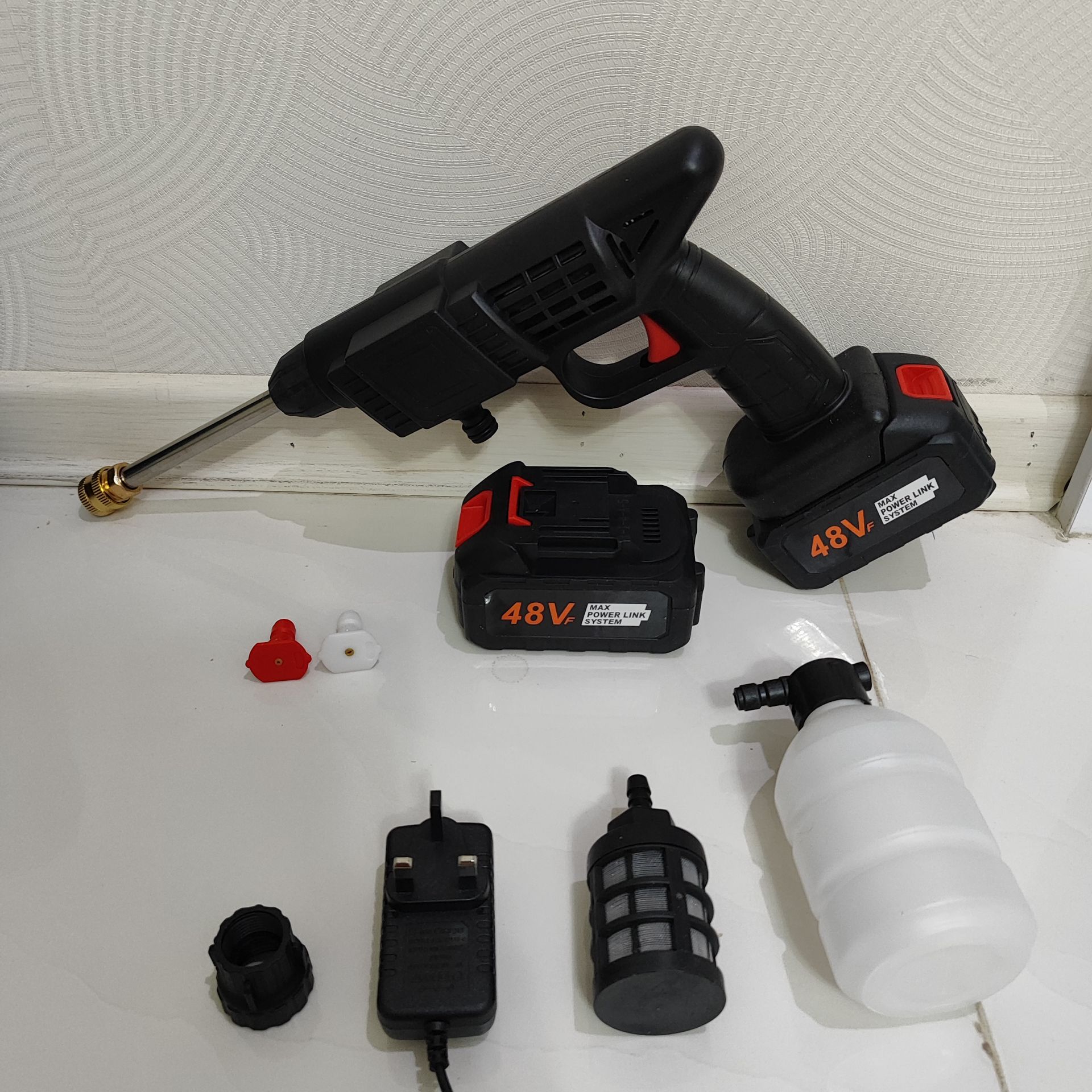 جعبه محصول شامل: 1 عدد دستگاه کارواش شارژی 1 عدد بطری فوم 1 عدد میله اکستنشن 1 عدد لوله آب 2 عدد باتری لیتیومی 1 عدد شارژر باتری 2 عدد کانکتور سریع 1 عدد فیلتر 2 عدد نازلکارواش شارژی حرفه ای تولید چین با قدرت بالا در پرتاب آب و دارای سری های مختلف فشار زیاد و کم و همچنین فوم پاش برای شستشوی بهتر اتومبیل است که در یک باکس بسیار شکیل و زیبا ارسال خواهد شد. پک سامسونتی کارواش شارژی حرفه ای در دنیای امروز، نظافت و نگهداری خودرو برای بسیاری از افراد اهمیت ویژهای دارد. کارواشهای سنتی با صرف زمان و هزینه زیاد، همواره گزینهای نه چندان مطلوب بودهاند. اما با ظهور کارواشهای شارژی، این مشکل تا حد زیادی برطرف شده است. پک سامسونتی کارواش شارژی حرفه ای با کیفیت عالی، راه حلی نوین و کارآمد برای شستشوی آسان و سریع خودرو در هر زمان و مکانی است. این دستگاه با ارائه ویژگیهای منحصربهفرد، تجربهای متفاوت از نظافت خودرو را برای شما به ارمغان میآورد.همچنین می توانید برای خرید کارواش خانگی به فروشگاه ما مراجعه نمایید. ویژگیهای پک سامسونتی کارواش شارژی حرفه ای قدرت و کارایی بینظیر: موتور قدرتمند پک سامسونتی کارواش شارژی حرفه ای، فشار آب بالایی را تولید میکند که به راحتی قادر به از بین بردن کثیفیها و لکههای سرسخت از سطح خودرو است. شارژی و قابل حمل: با طراحی بیسیم و باتری قدرتمند، این کارواش به شما امکان میدهد در هر مکانی، بدون نیاز به پریز برق، خودروی خود را تمیز کنید. سبک و قابل حمل بودن آن نیز حمل و نقل و استفاده از آن را آسانتر میسازد. نازلهای متنوع: این پک شامل نازلهای مختلفی است که برای شستشوی سطوح مختلف خودرو طراحی شدهاند. نازلهای پاشش مستقیم، پاشش چرخشی و پاشش پهن، امکان تنظیم نوع پاشش آب را بسته به نیاز شما فراهم میکنند. مخزن مواد شوینده: با داشتن مخزن مواد شوینده، میتوانید به راحتی از مواد شوینده مناسب برای شستشوی بهتر و سریعتر خودرو استفاده کنید. این ویژگی به شما کمک میکند تا لکهها و آلودگیهای چرب را به آسانی از بین ببرید. کیفیت ساخت بالا و دوام: استفاده از مواد اولیه با کیفیت در ساخت این کارواش، طول عمر و دوام آن را تضمین میکند. با خرید این محصول، میتوانید برای مدت طولانی از یک کارواش شارژی حرفهای بهرهمند شوید. استفاده آسان: طراحی ارگونومیک و رابط کاربری ساده این کارواش، استفاده از آن را برای همه افراد، حتی کسانی که تجربه کار با این نوع دستگاهها را ندارند، آسان میسازد. صرفه جویی در مصرف آب: با استفاده از پک سامسونتی کارواش شارژی حرفه ای، میتوانید در مصرف آب صرفهجویی کنید. فشار آب بالا و نازلهای مناسب، امکان شستشوی کامل خودرو را با کمترین میزان مصرف آب فراهم میکنند. کاربردهای متنوع: این کارواش شارژی تنها برای شستشوی خودرو کاربرد ندارد، بلکه میتوانید از آن برای شستشوی حیاط، مبلمان باغی، دوچرخه و سایر وسایل نیز استفاده کنید. نتیجه پک سامسونتی کارواش شارژی حرفه ای با ارائه ترکیبی از قدرت، کارایی، قابلیت حمل و دوام، انتخابی هوشمندانه برای کسانی است که به دنبال راهی آسان، سریع و مقرون به صرفه برای شستشوی خودرو و سایر وسایل خود هستند. با این کارواش شارژی، دیگر نیازی به مراجعه به کارواشهای سنتی و صرف هزینه و زمان زیاد نخواهید داشت.
